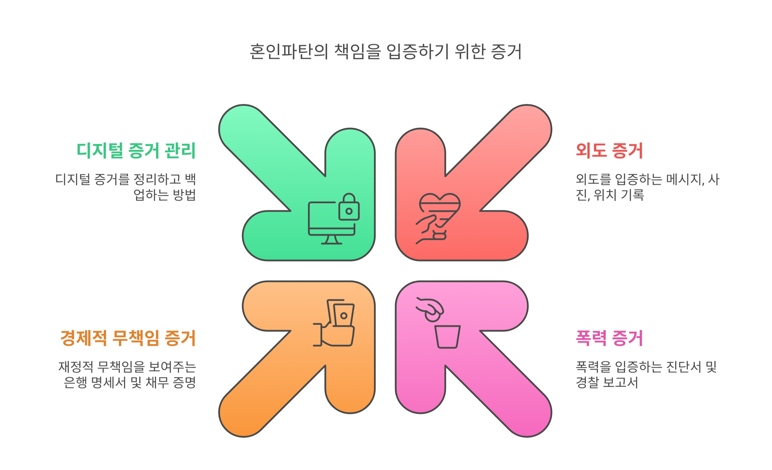소송에서 승소하기 위한 자료는 물론, 위자료 청구나 양육권 분쟁에서도 귀책 입증은 매우 중요해요.