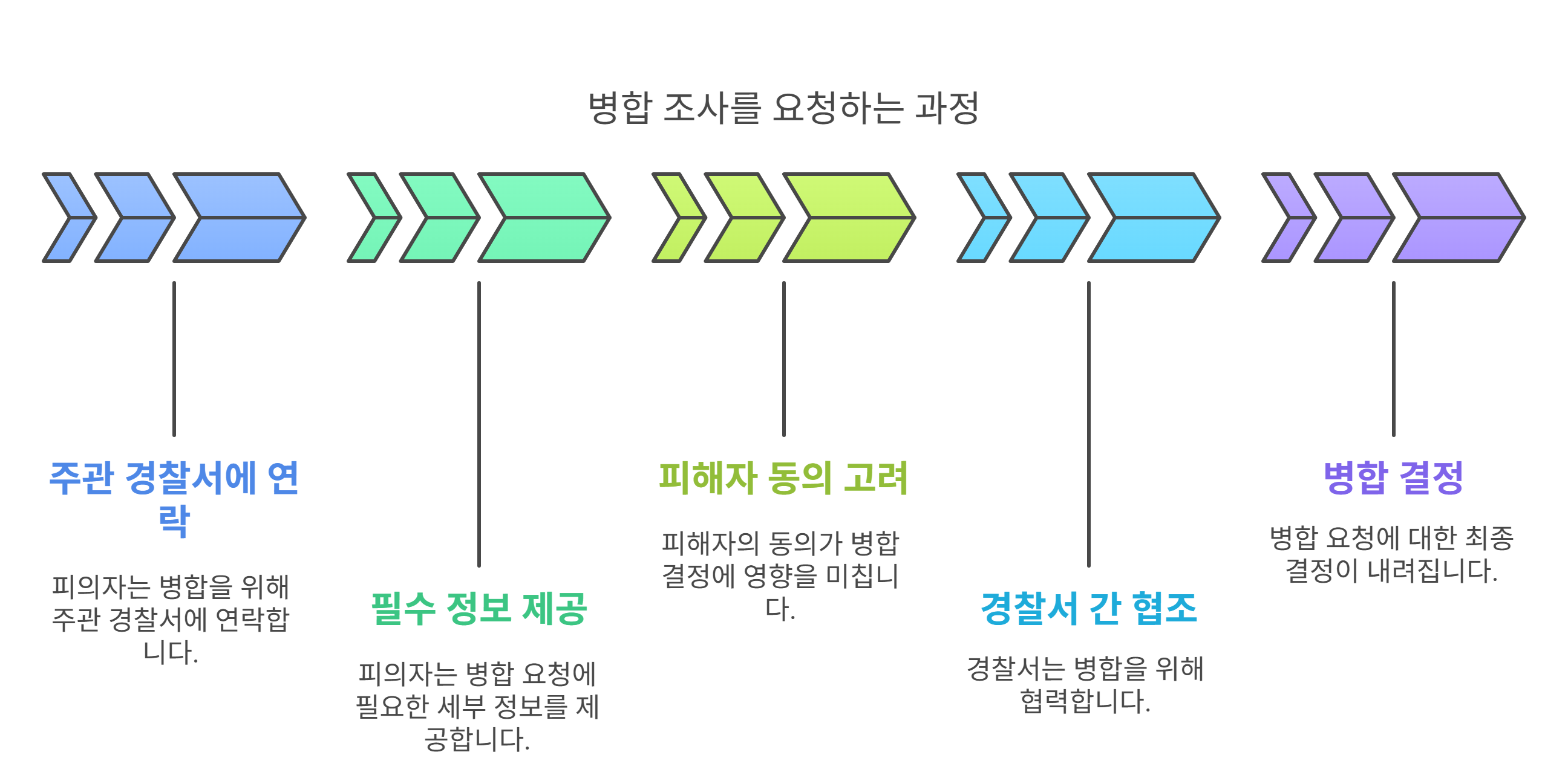 병합조사는 경찰의 재량으로 이루어지며, 피의자 본인이 요청할 수 있지만 무조건 허용되는 건 아닙니다.