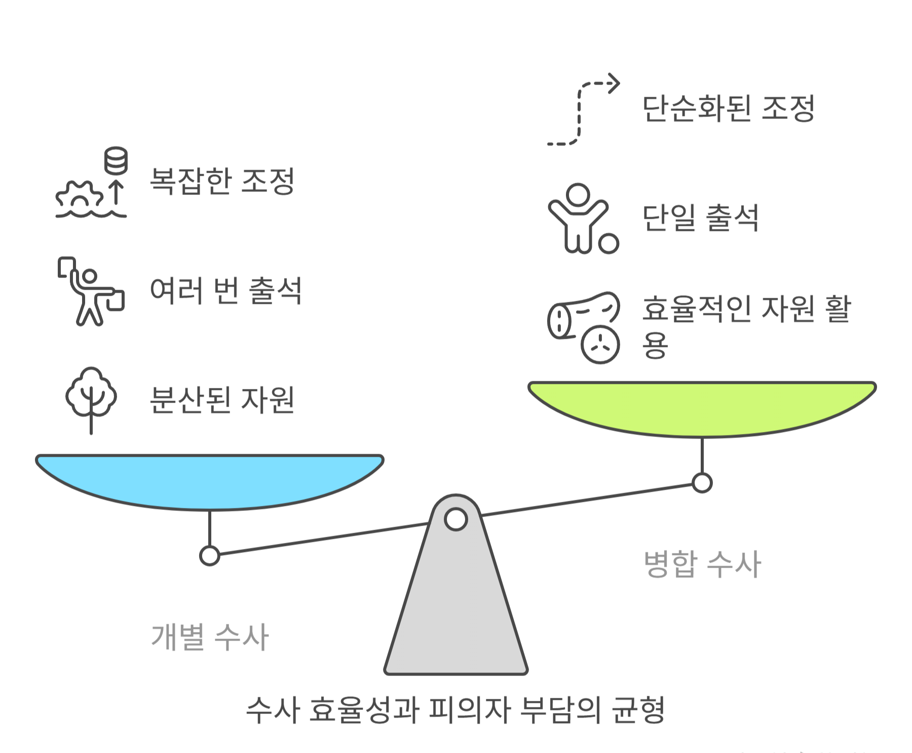 ✅ 병합조사는 동일 피의 사건들을 한 번에 조사받을 수 있도록 해주는 제도로,