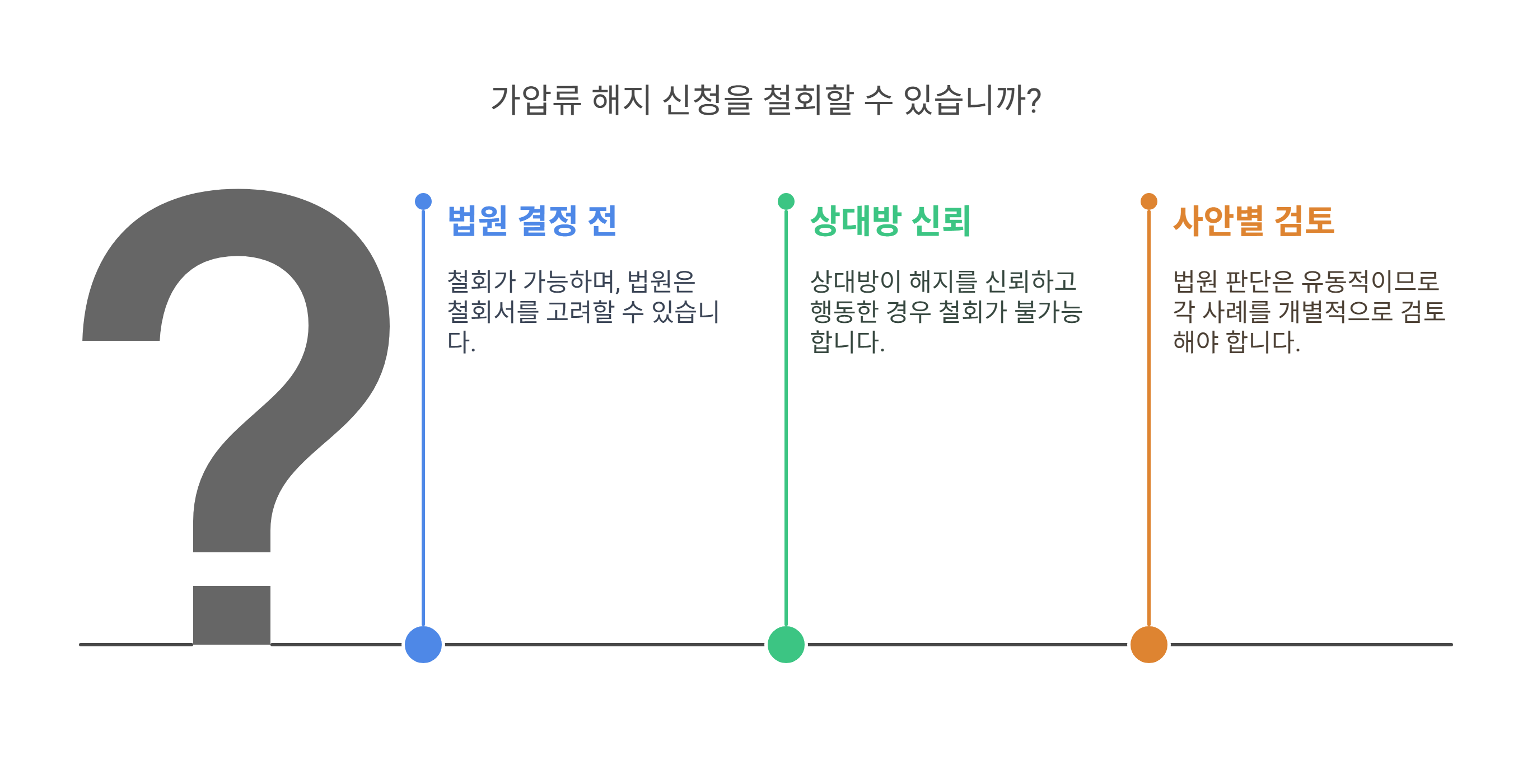가압류 해지 신청이 철회 가능한지에 대해 대법원과 하급심 판례는 ‘법원의 해지 결정 전’ 여부에 따라 달리 판단하고 있어요.