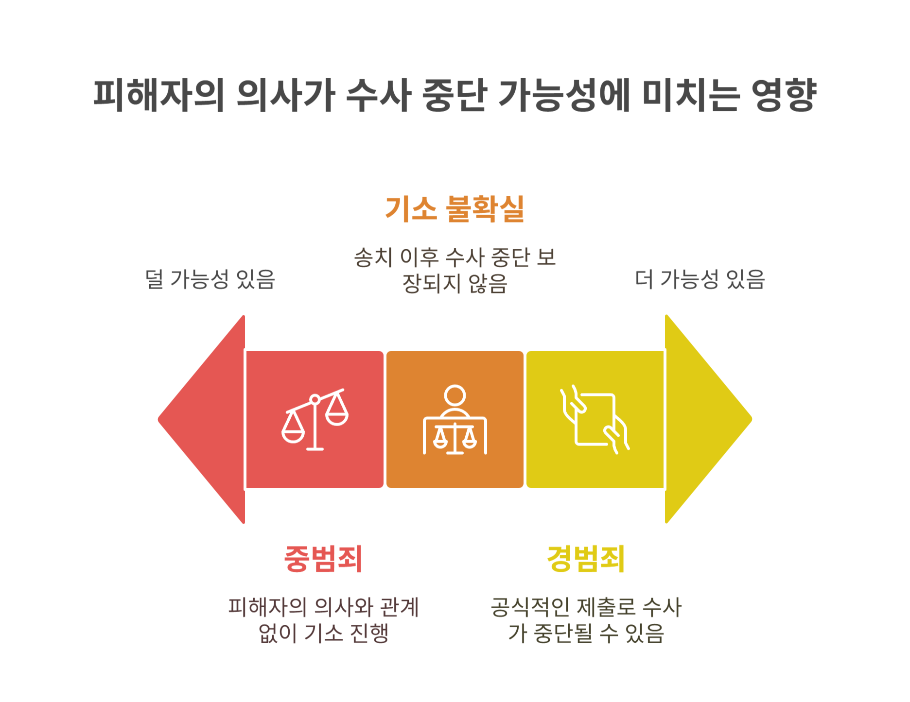 주의: 피해자 의사를 제출해도 검찰 송치 이후엔 수사 중지 보장되지 않으며, 처벌 가능성이 존재합니다.