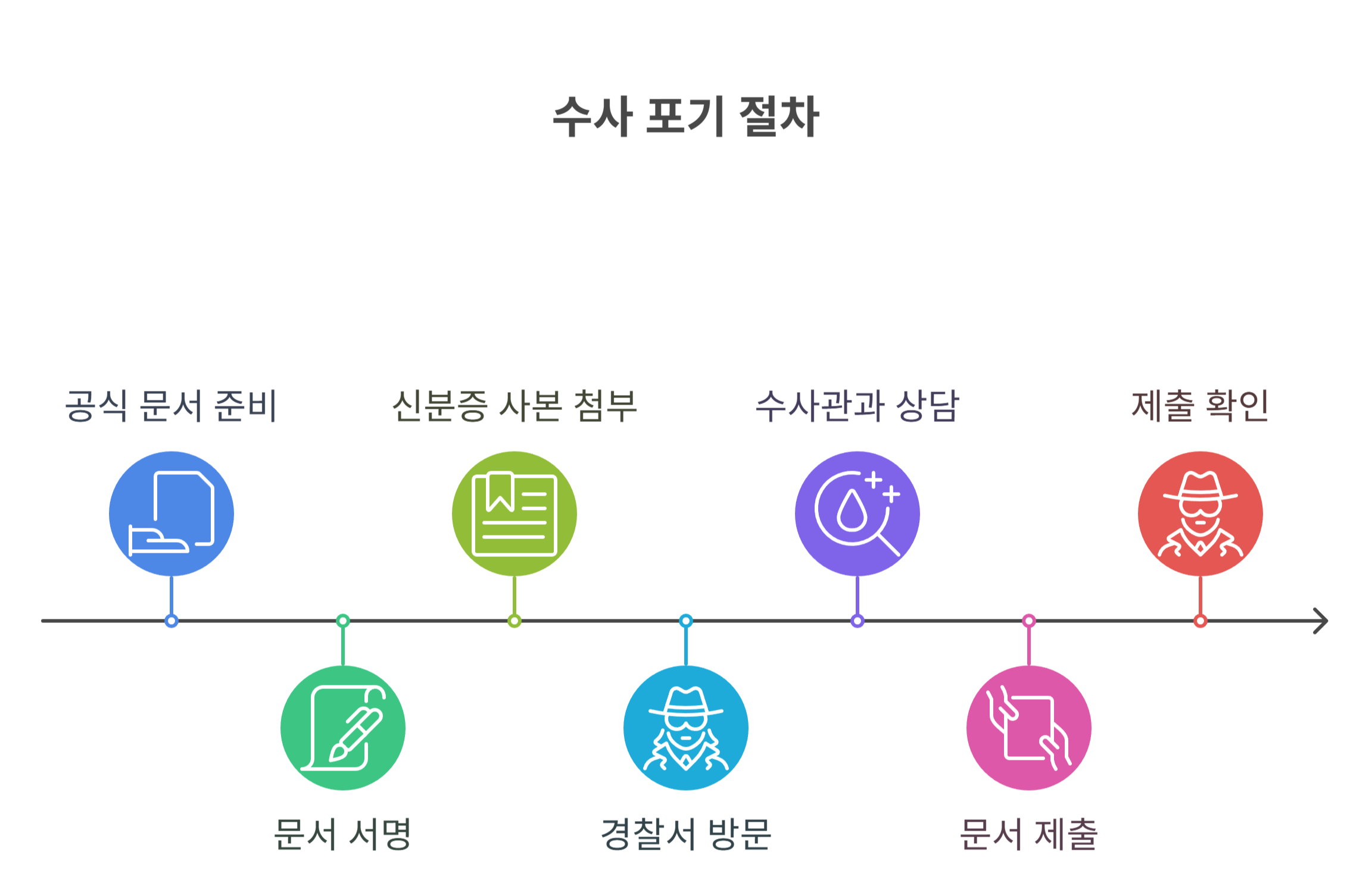 💡 TIP: 수사 포기 의사는 반드시 자발적으로 작성되고, 외압 없이 제출되어야 하며 경찰관이 이를 확인합니다.