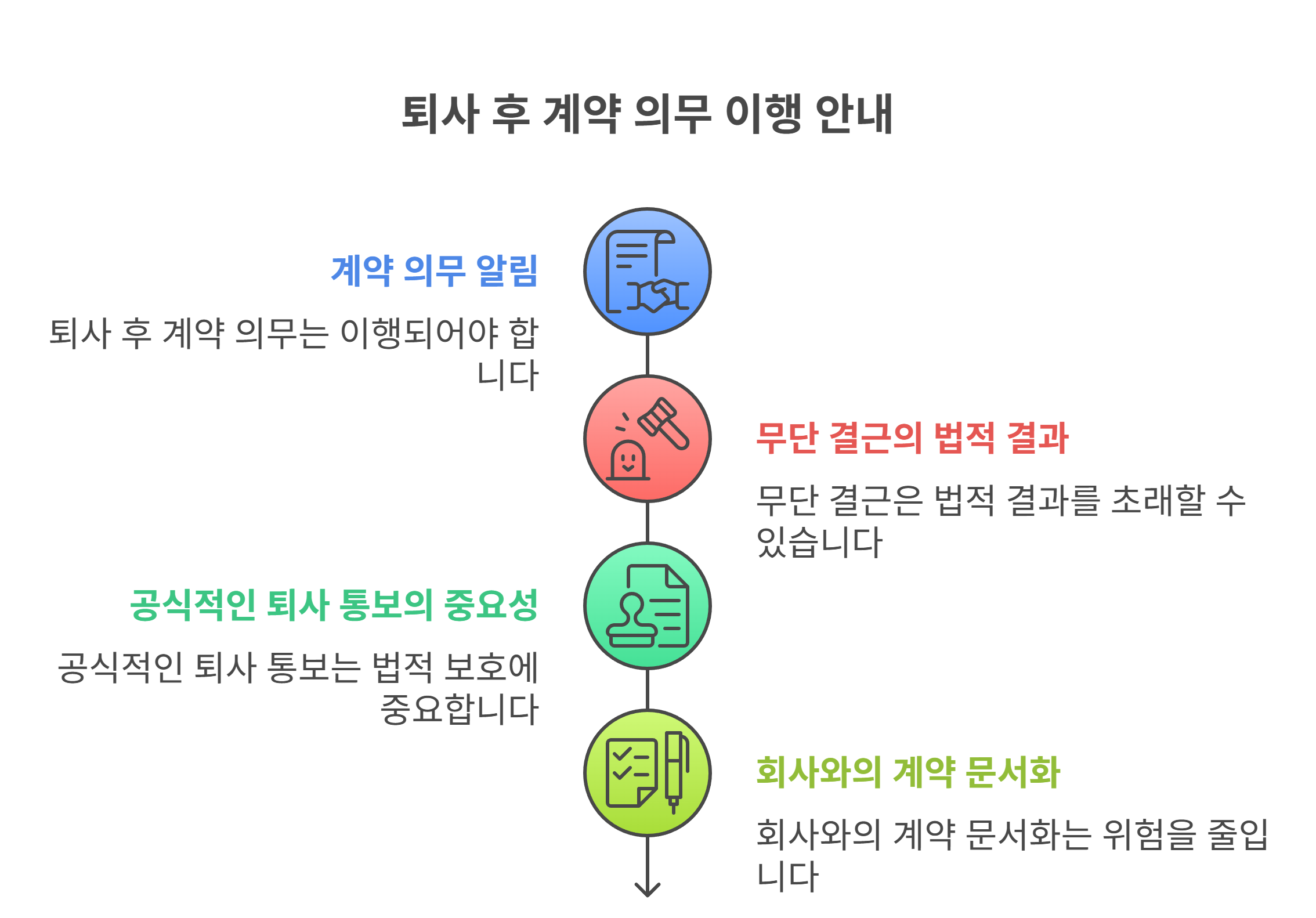 💡 TIP: 퇴사 후 근무 거부 전에 회사와의 협의 기록을 남겨두는 것이 불이익을 줄이는 핵심입니다.