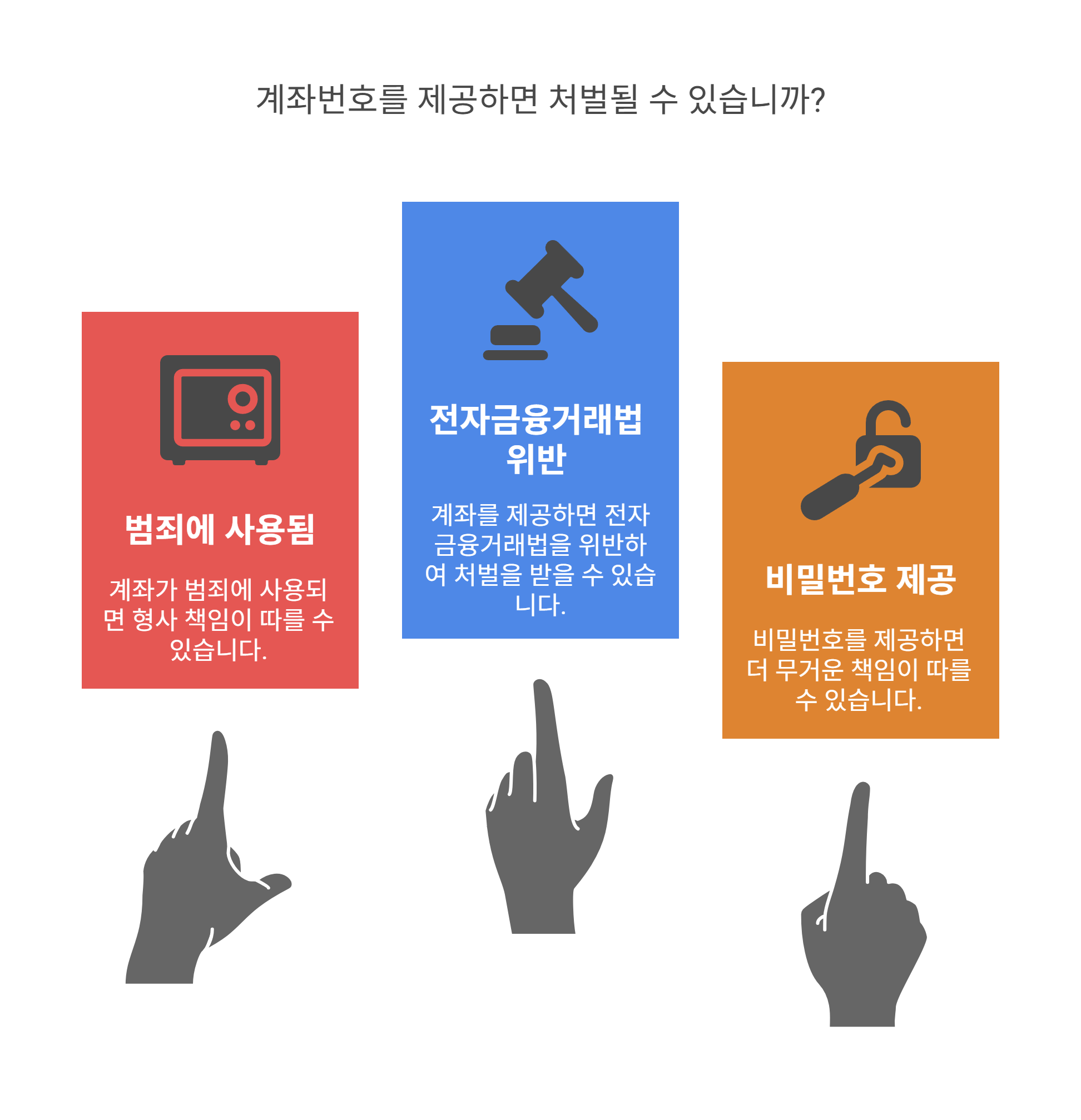 실제로는 단순히 계좌번호만 알려줬어도 자금세탁이나 전자금융거래법 위반으로 법적 책임을 질 수 있는 상황이 생길 수 있답니다.