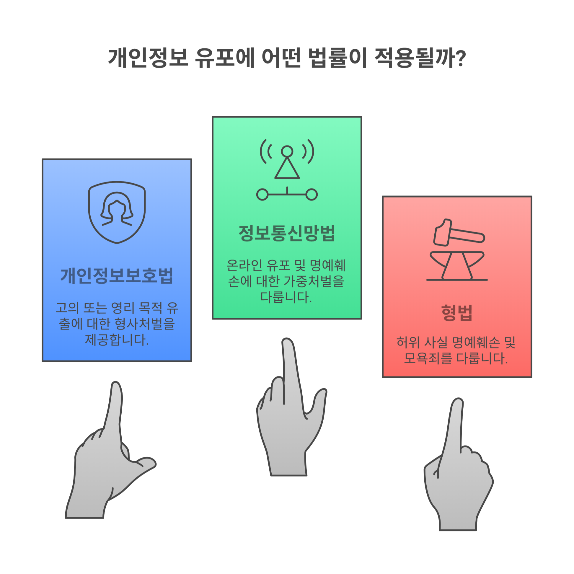 개인정보 유포는 3가지 주요 법률에 따라 처벌받을 수 있어요