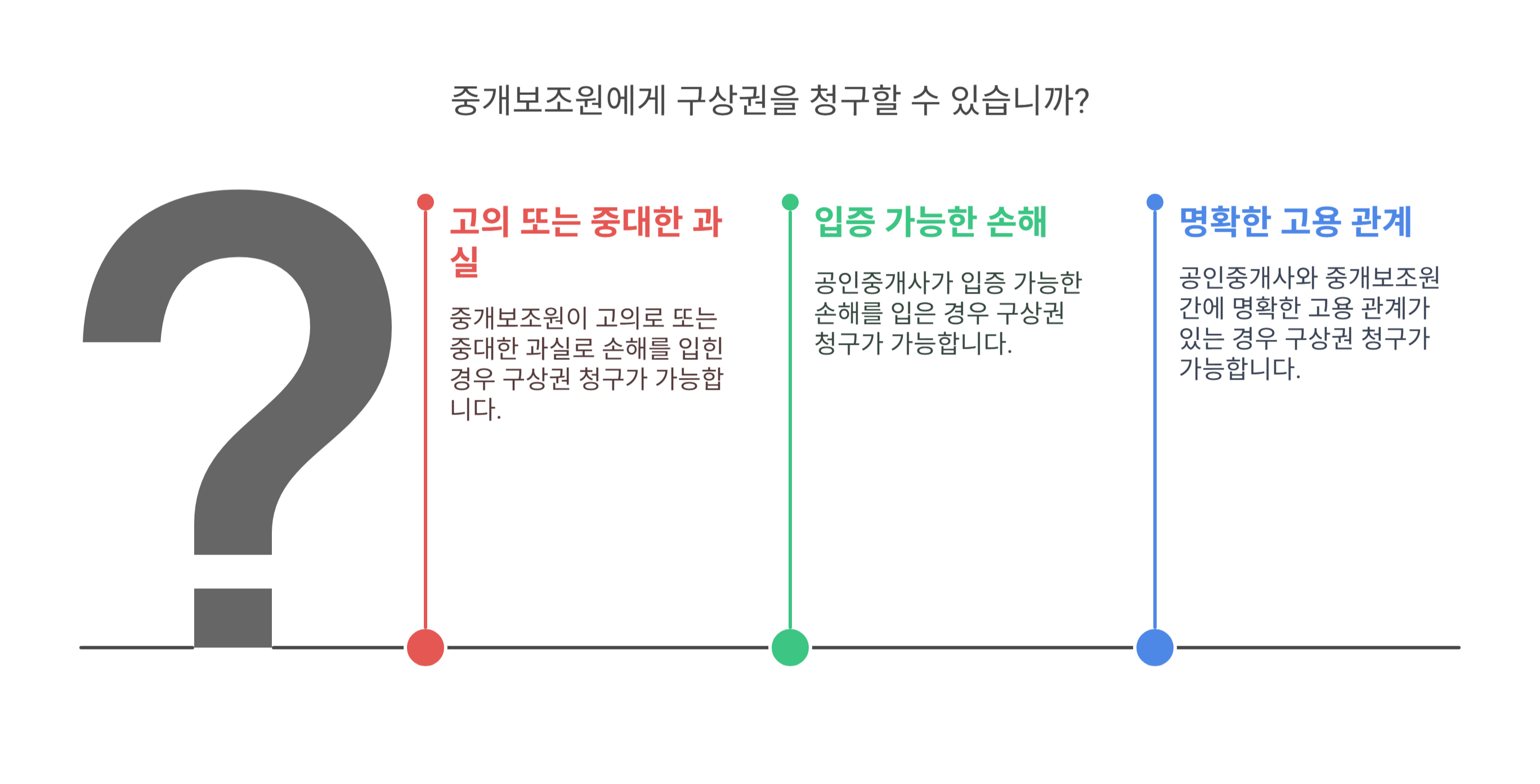 💡 TIP: 구상권을 청구하려면 중개보조원의 과실이 명백해야 하며, 실제 손해 입증자료가 필요합니다.