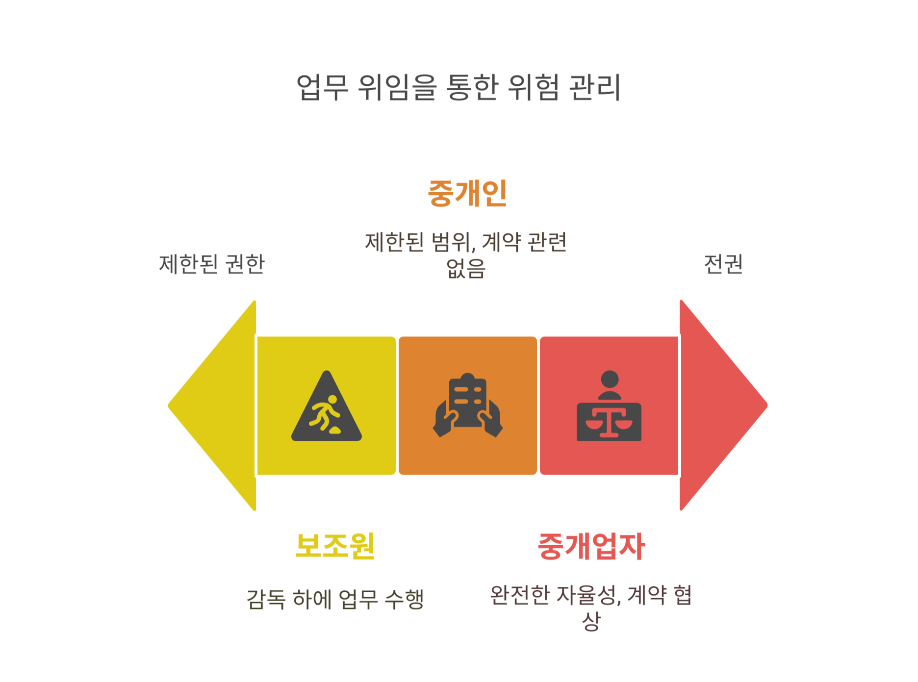 ⚠️ 주의: 중개보조원은 계약서 작성·설명·서명 권한이 전혀 없으며, 이를 어겼을 경우 전체 계약에 법적 문제가 발생할 수 있어요.