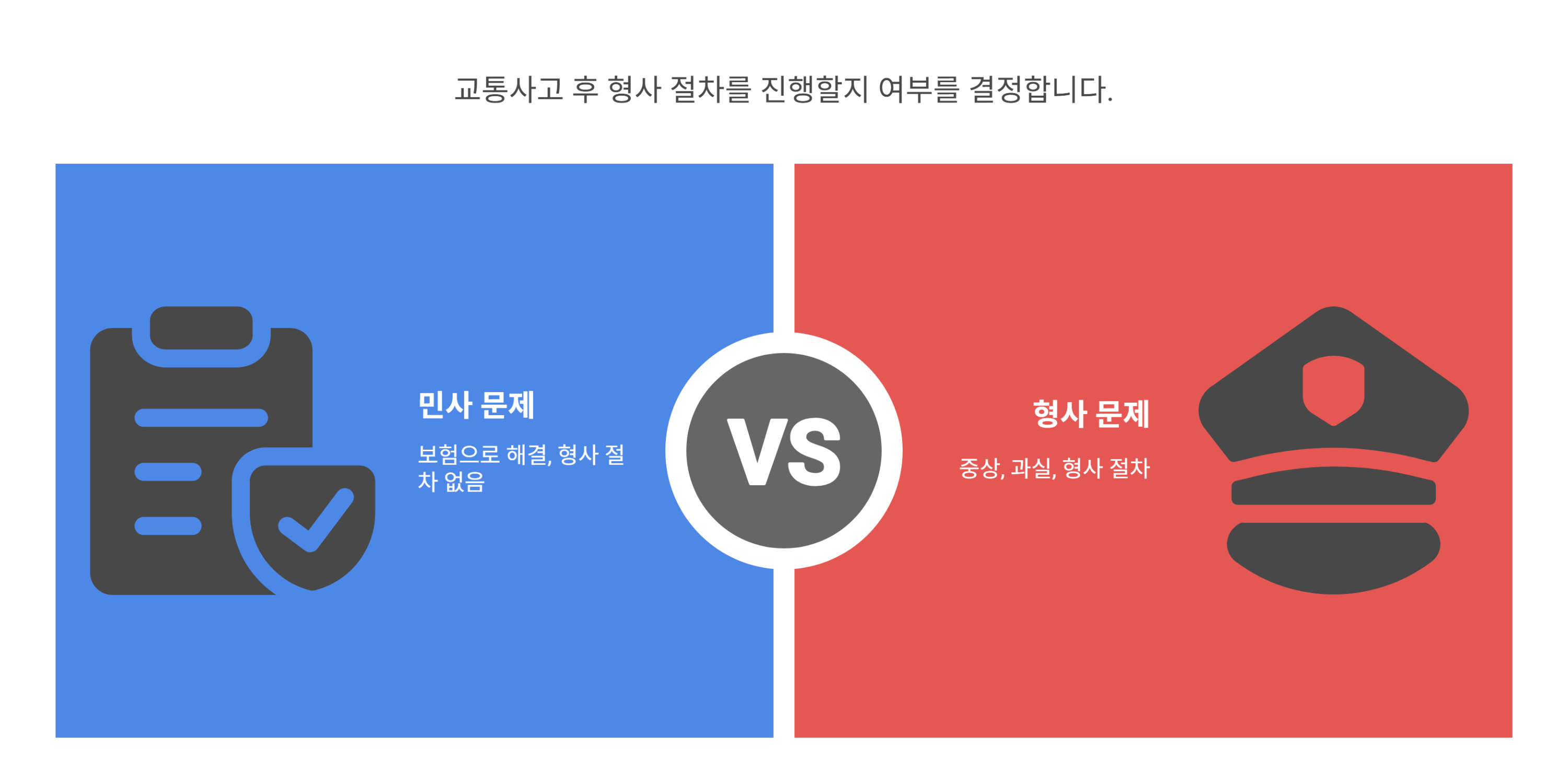 단순 접촉사고나 차량 파손 사고는 대부분 민사 문제로 처리되고, 보험으로 해결되는 경우가 많습니다.