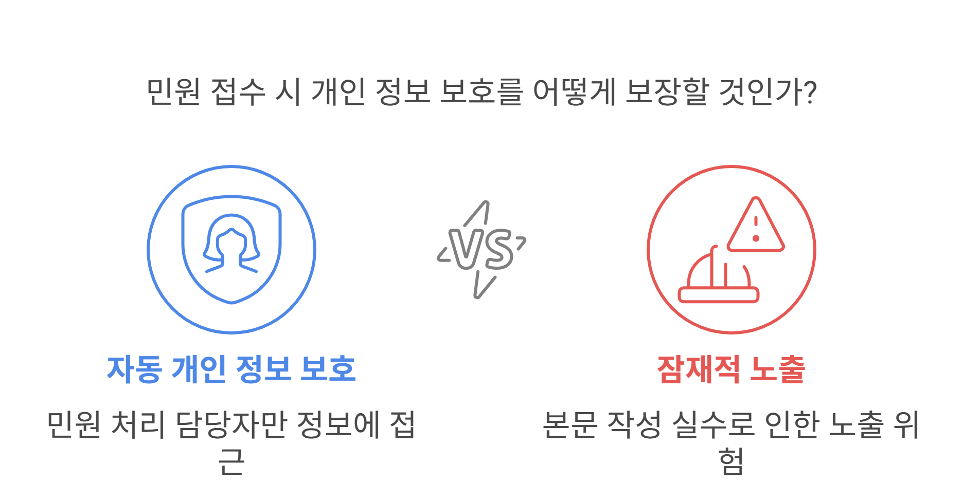 예: “저는 ○○에서 근무 중인 홍길동입니다”처럼 본문에 실명을 기재할 경우, 처리 과정에서 일부 노출될 위험이 있습니다.