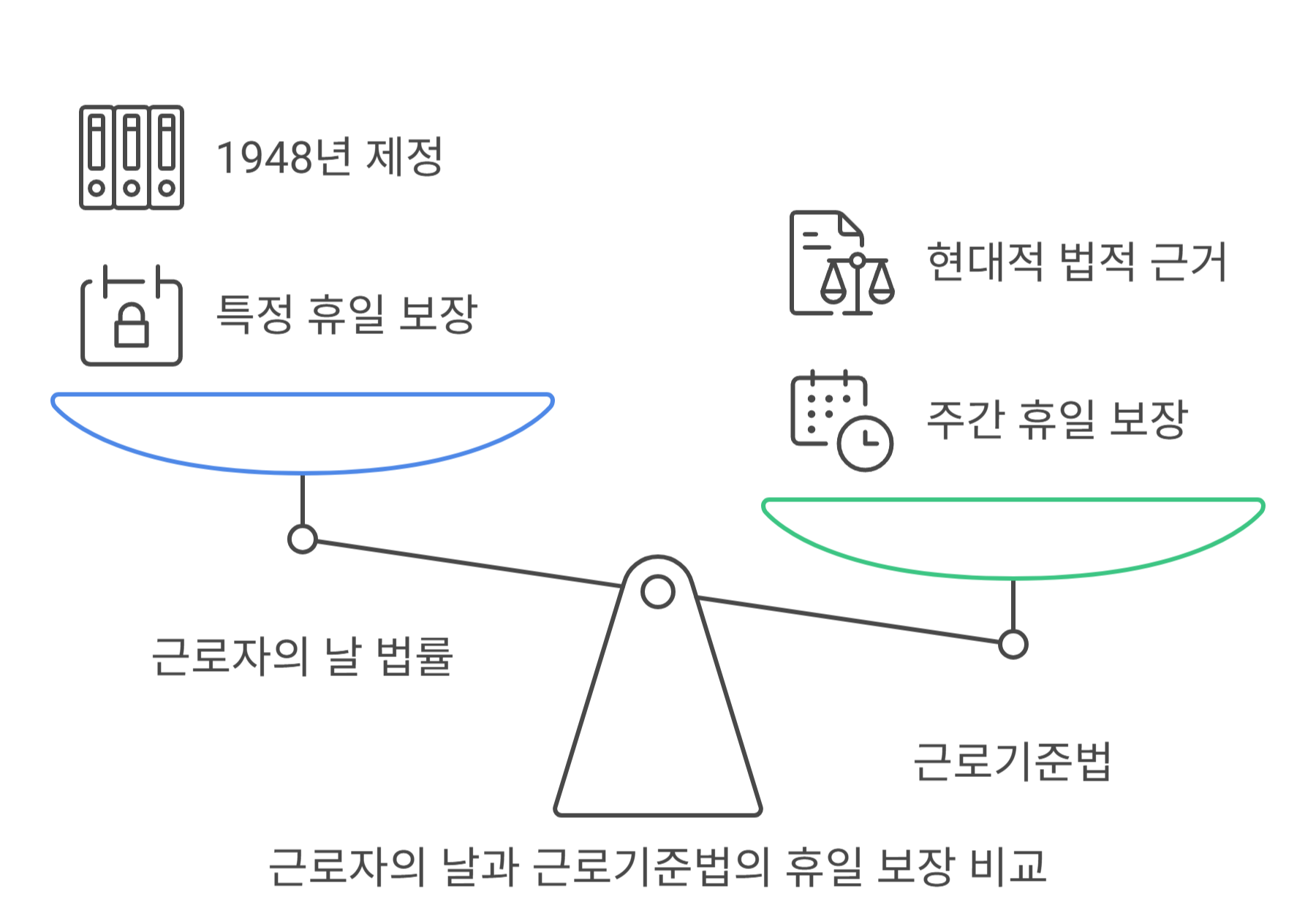 반면, 근로자의 날은 별도로 제정된 ‘유급휴일’이에요. 이는 근로자의 날 제정에 관한 법률에서 명시된 내용이죠.