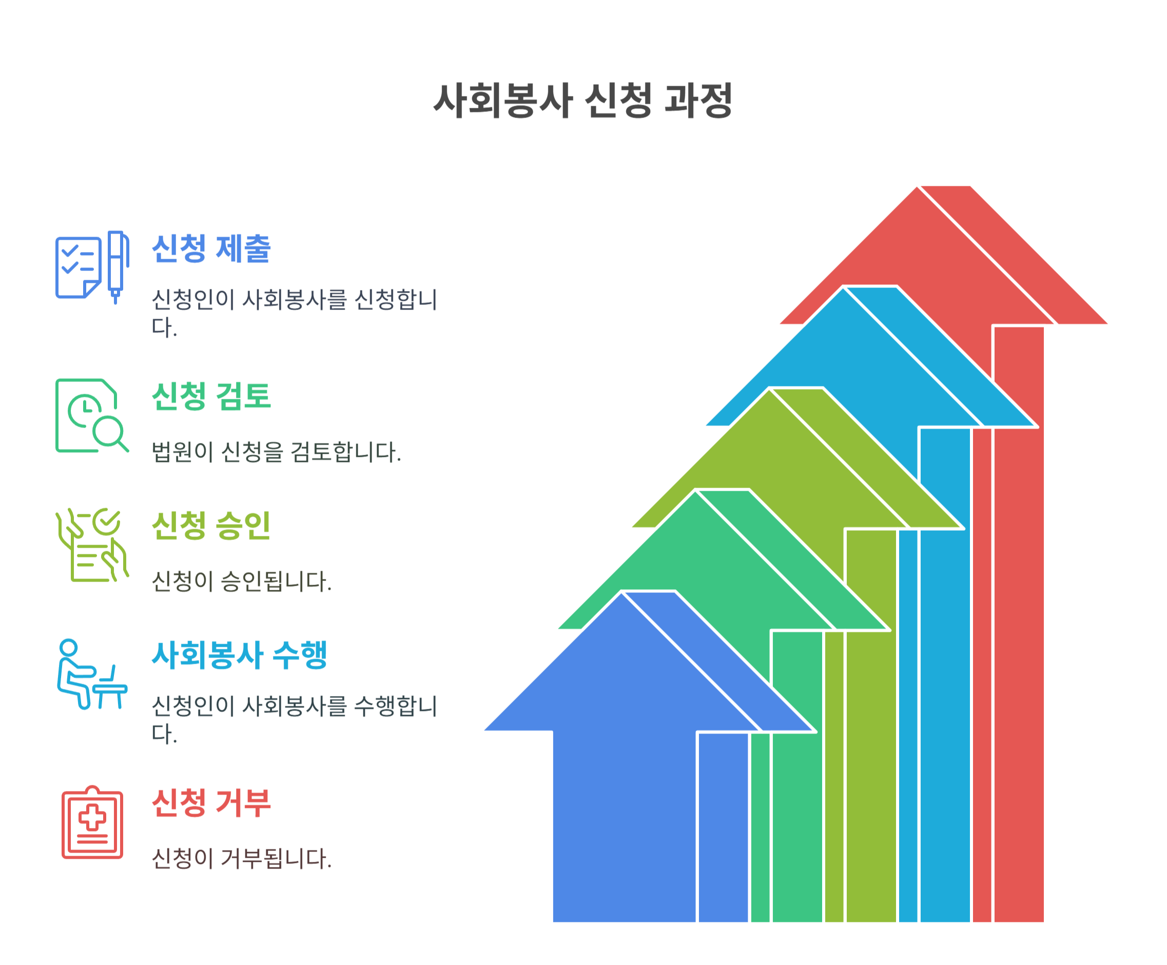다음은, 사회봉사명령을 실제로 어떻게 신청하는지 절차를 알려드릴게요! 📝