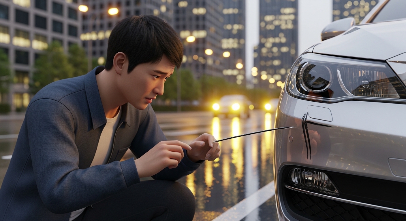 - 파손 부위 촬영: 긁힌 부위의 페인트 색상이나 높이를 근접 촬영하고, 전체적인 차량 위치가 보이게 원거리 사진도 찍어둡니다.