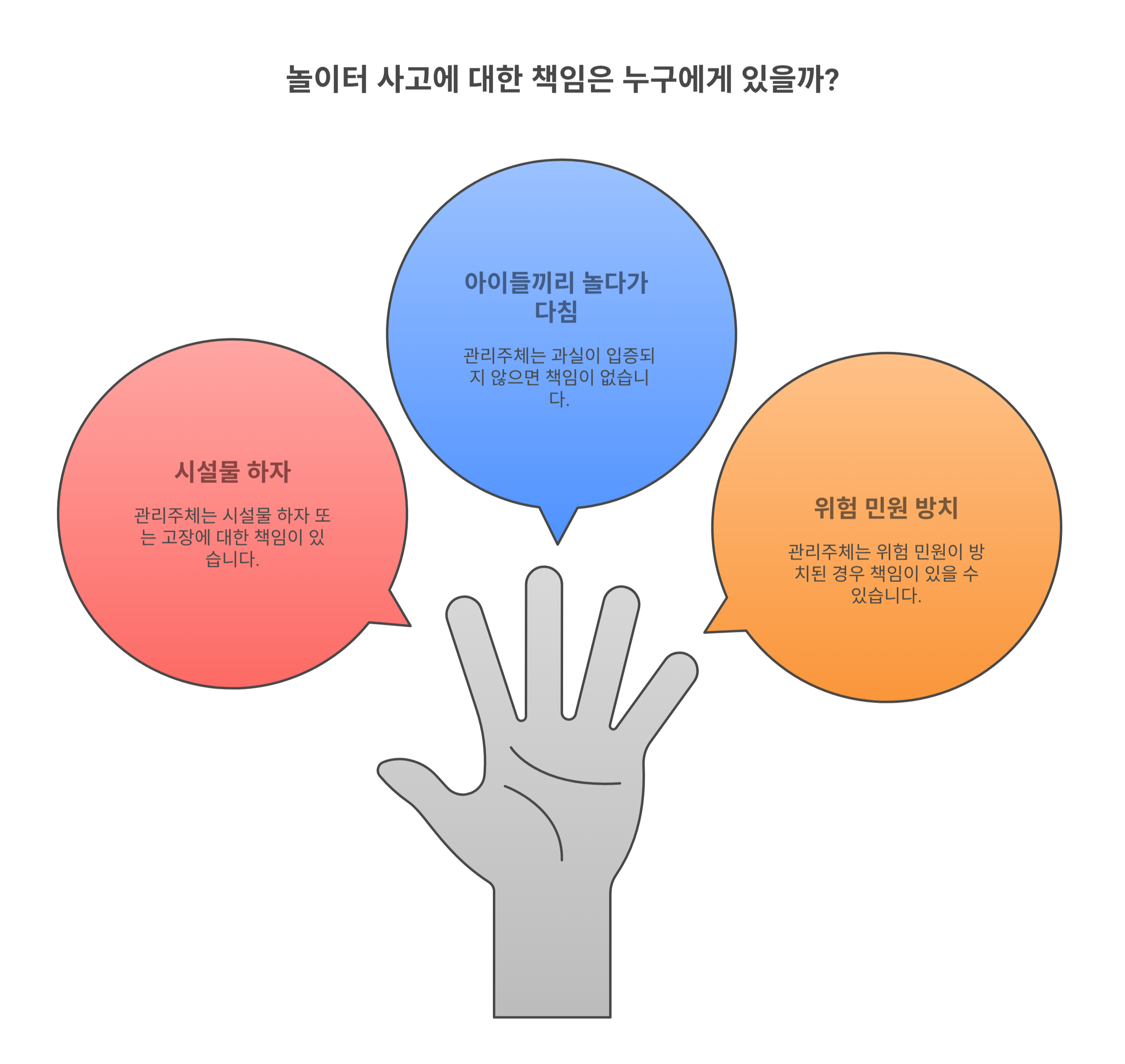🔍 핵심 요약: 공공 놀이터라도 시설 점검·유지의 책임이 있는 관리주체는 사고 발생 시 일정 책임을 지게 됩니다.