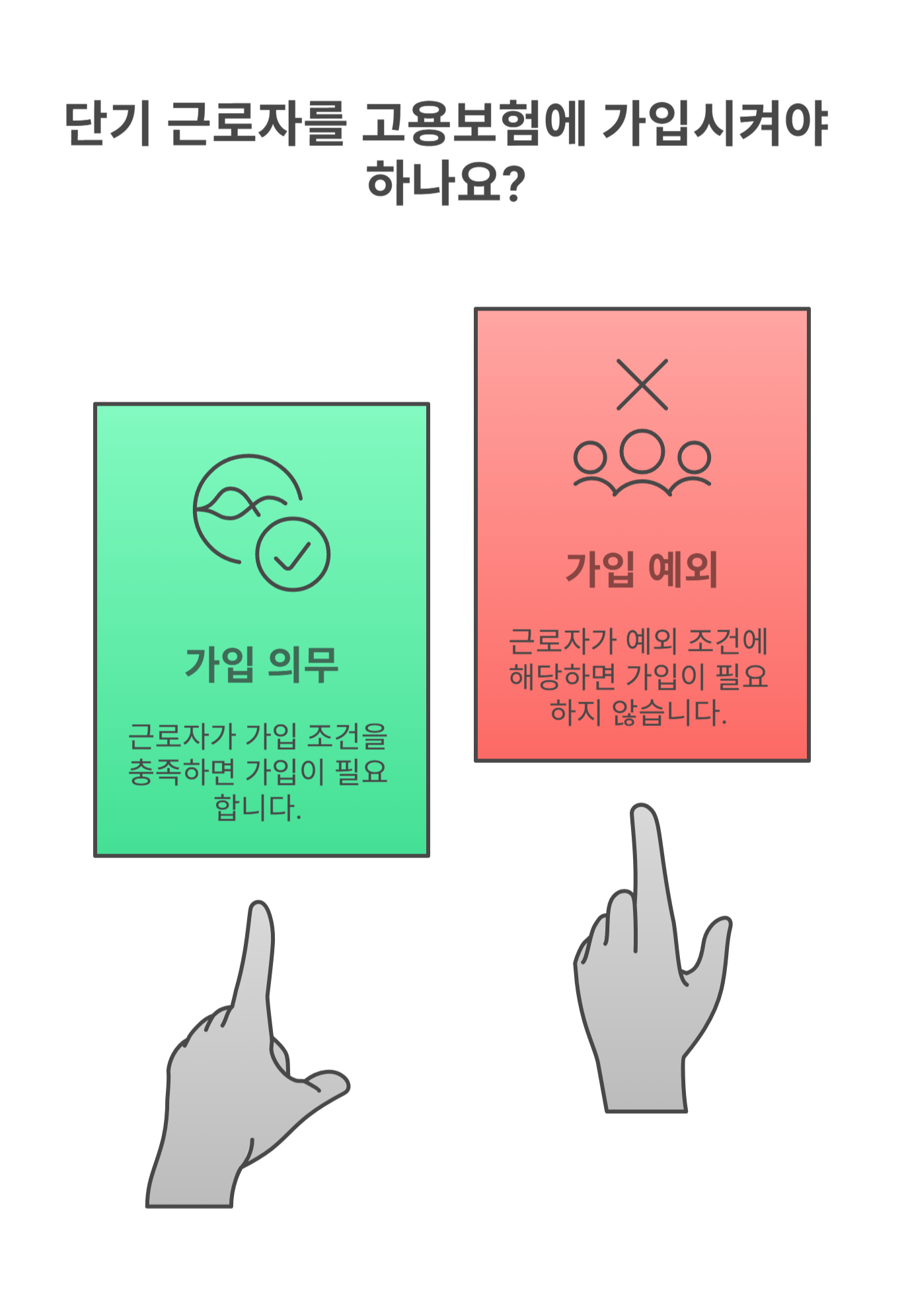 일용직, 단기근로자, 알바생이라도 예외 조건에 해당하지 않으면 사업주는 고용보험에 가입시켜야 해요.