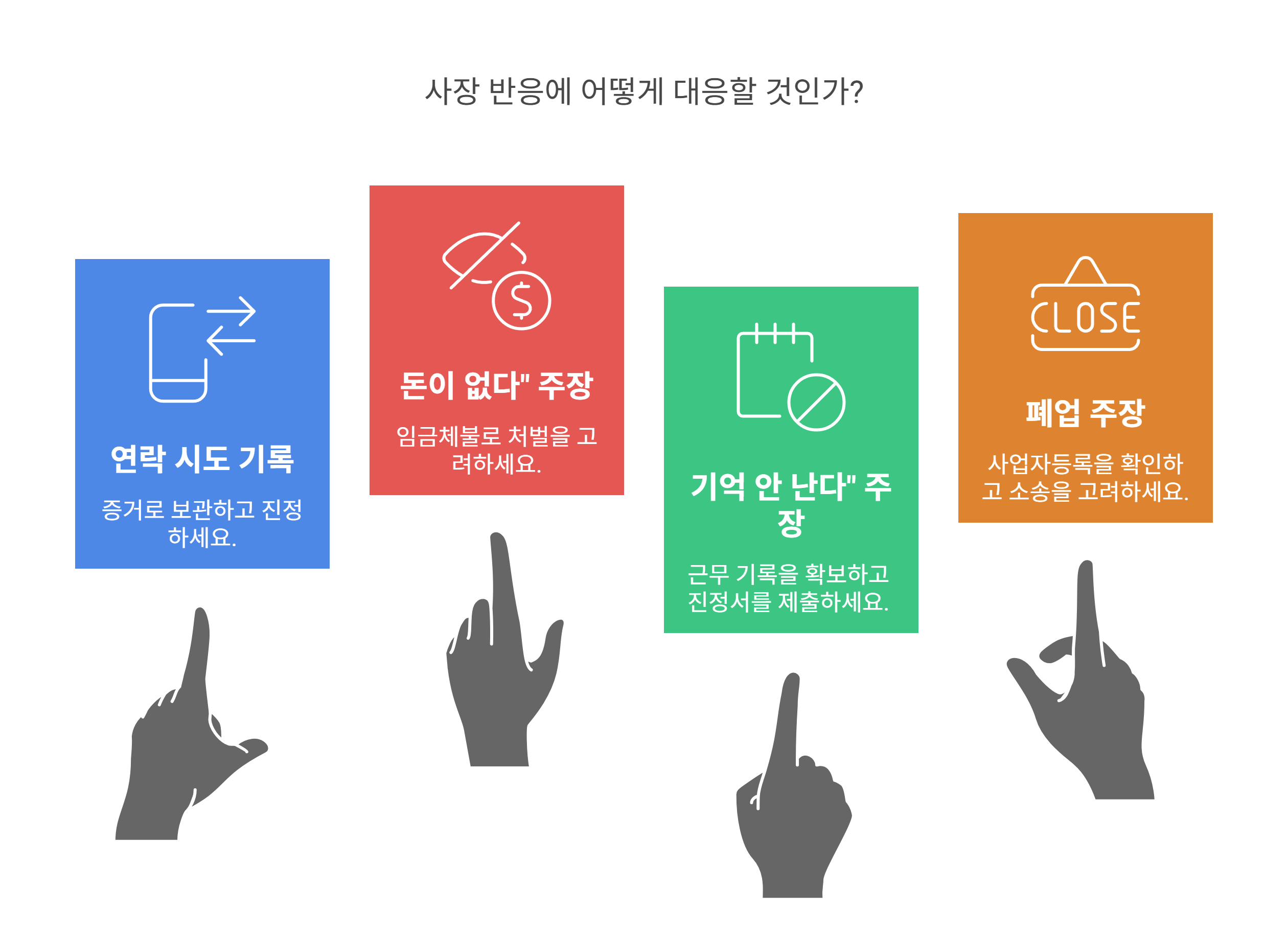 - 진정 이후 사장이 불응하면 검찰 송치 및 법원 강제집행 절차도 가능합니다.