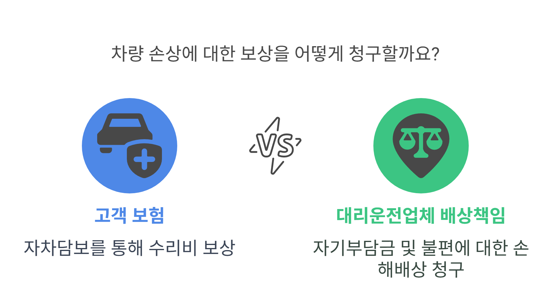 보통 고객 차량의 자동차상해담보로 처리되며, 중과실이 인정되면 대리운전 업체에 손해배상 청구도 가능합니다.