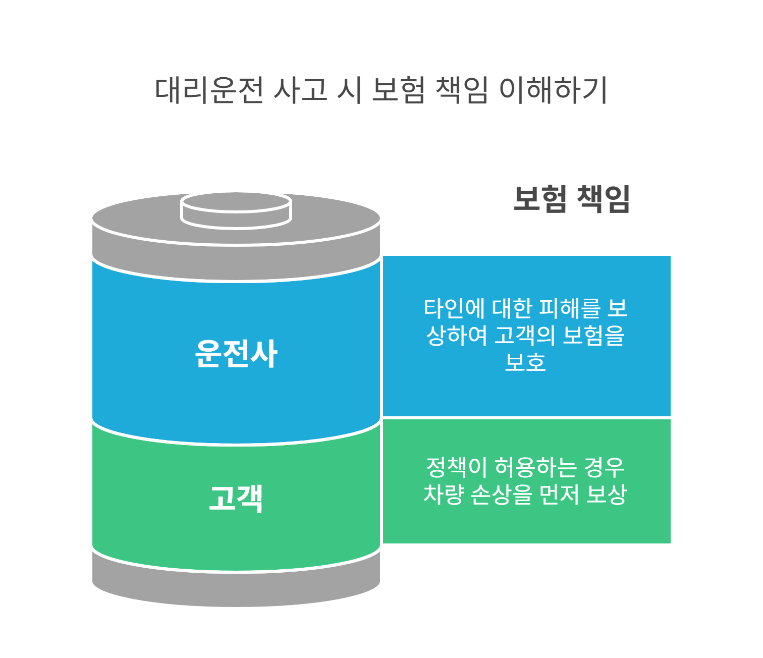 ✅ 대리운전 중 사고가 나면 고객 차량 보험이 우선 적용되지만,