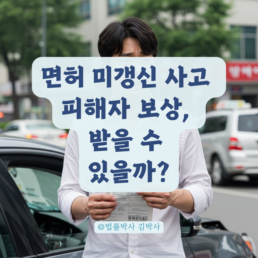 사고 당시 면허 갱신이 안 된 상태라 하더라도 피해자라면 치료비, 위자료 등은 보장받을 수 있어요.