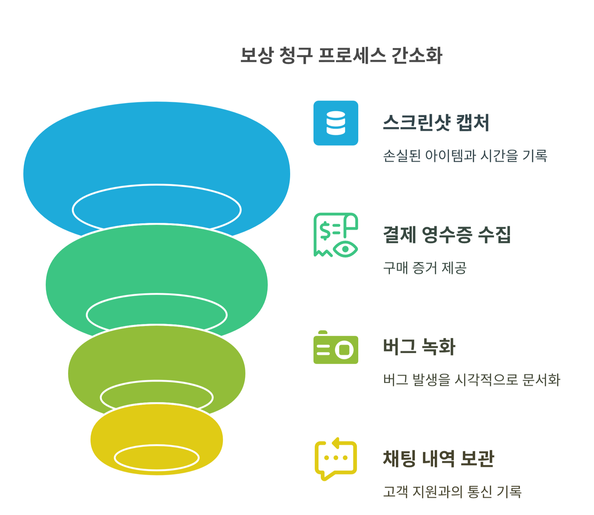 게임사는 내부 로그를 통해 확인하겠다고 하지만, 사용자 측의 자료도 함께 제출하면 보상 처리 속도가 훨씬 빨라져요!