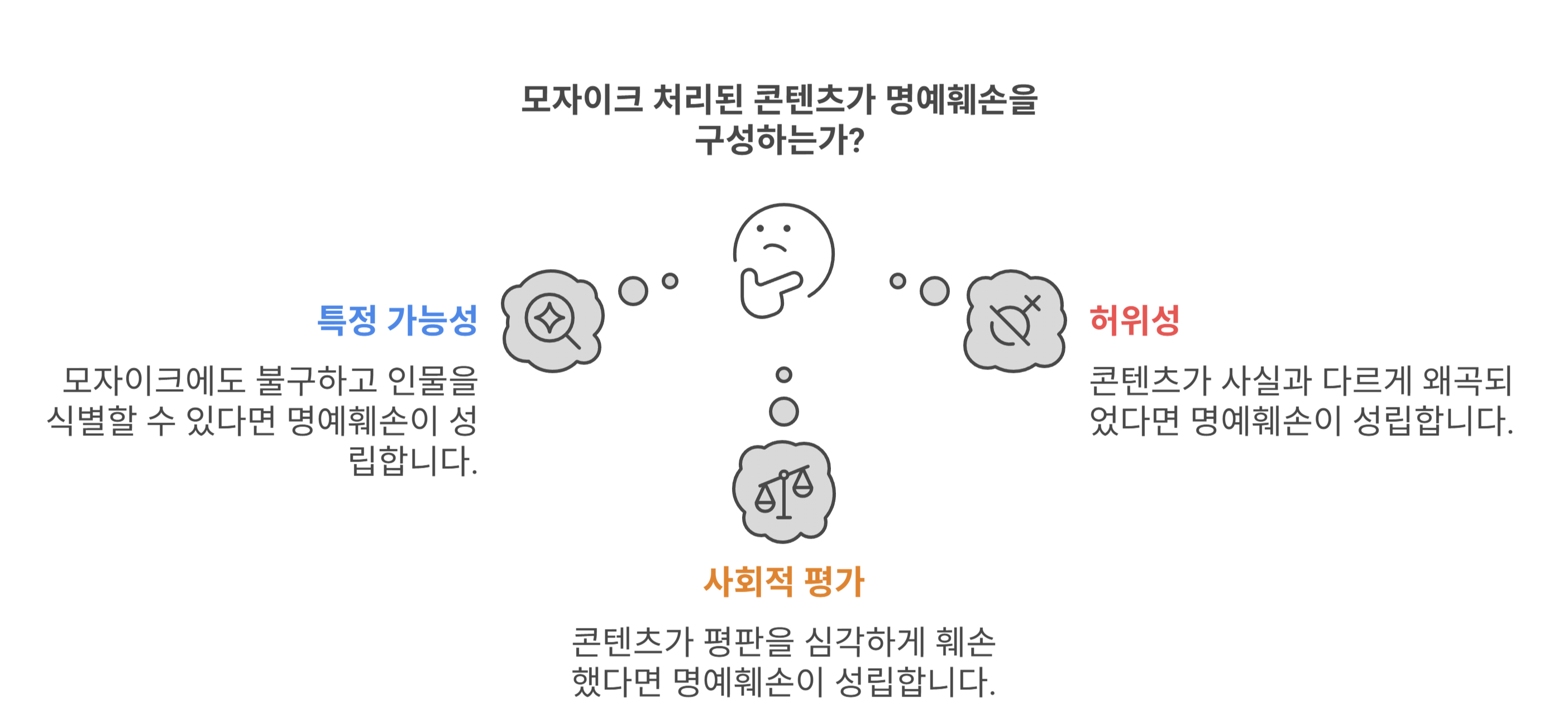 명예훼손이 성립하려면 3가지 요건이 필요합니다 ✅