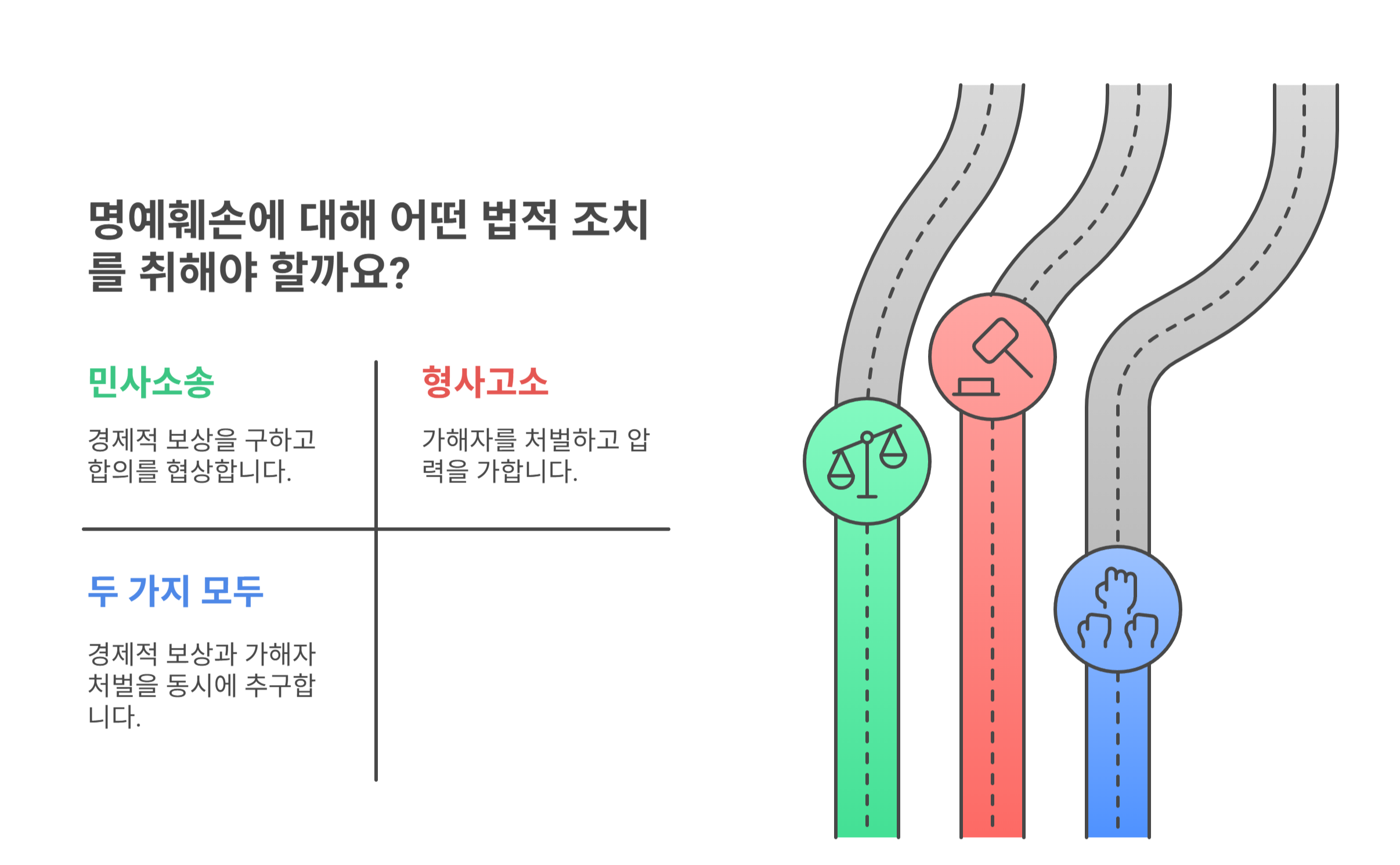 명예훼손은 민사와 형사 둘 다 대응할 수 있어요 ✅