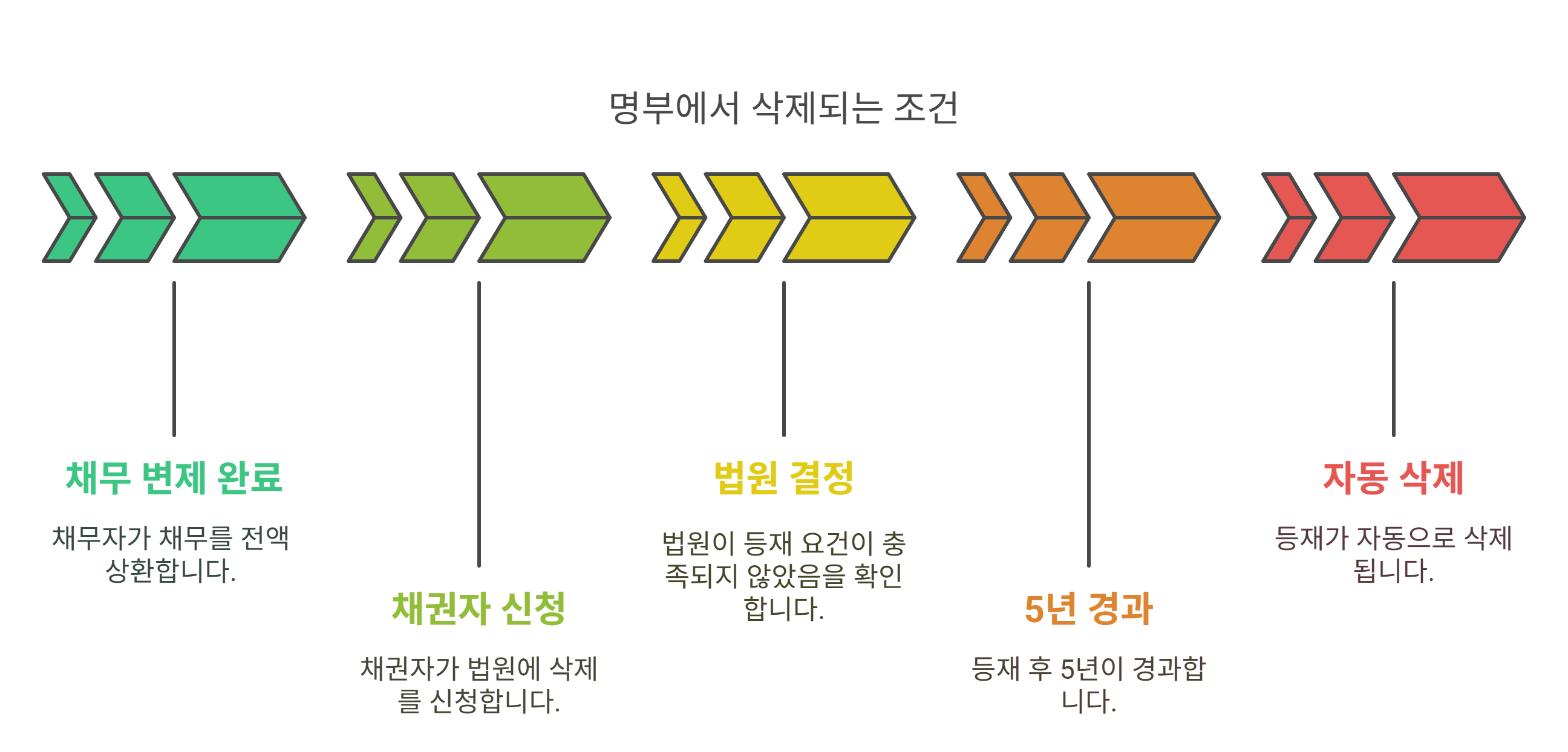 등재일로부터 5년이 경과하면 법원의 삭제 없이도 자동 소멸되며, 이 정보는 신용정보기관에도 반영됩니다.