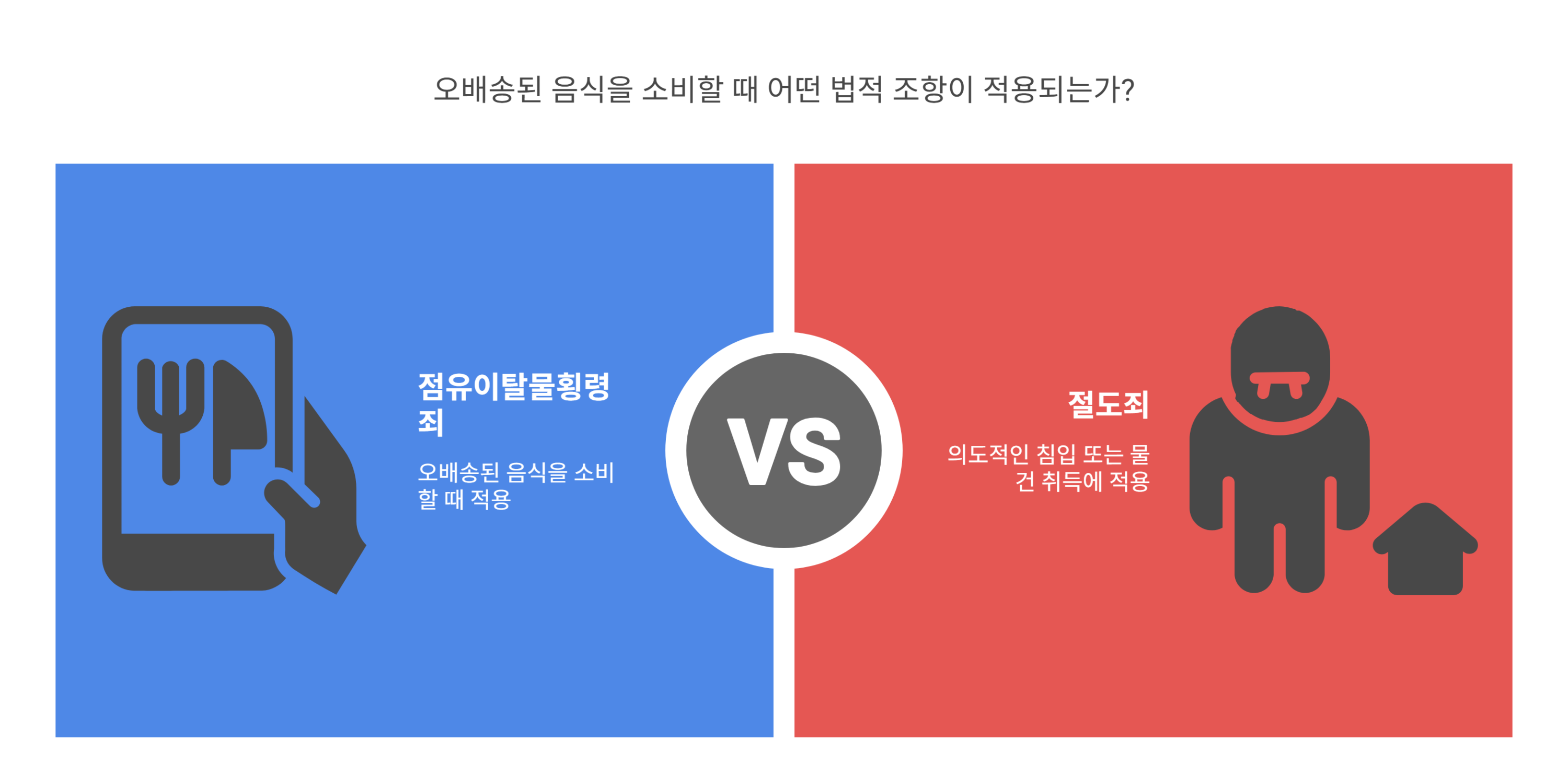 ✅ 오배송 음식 무단 섭취 시 ‘점유이탈물횡령죄’ 적용 가능