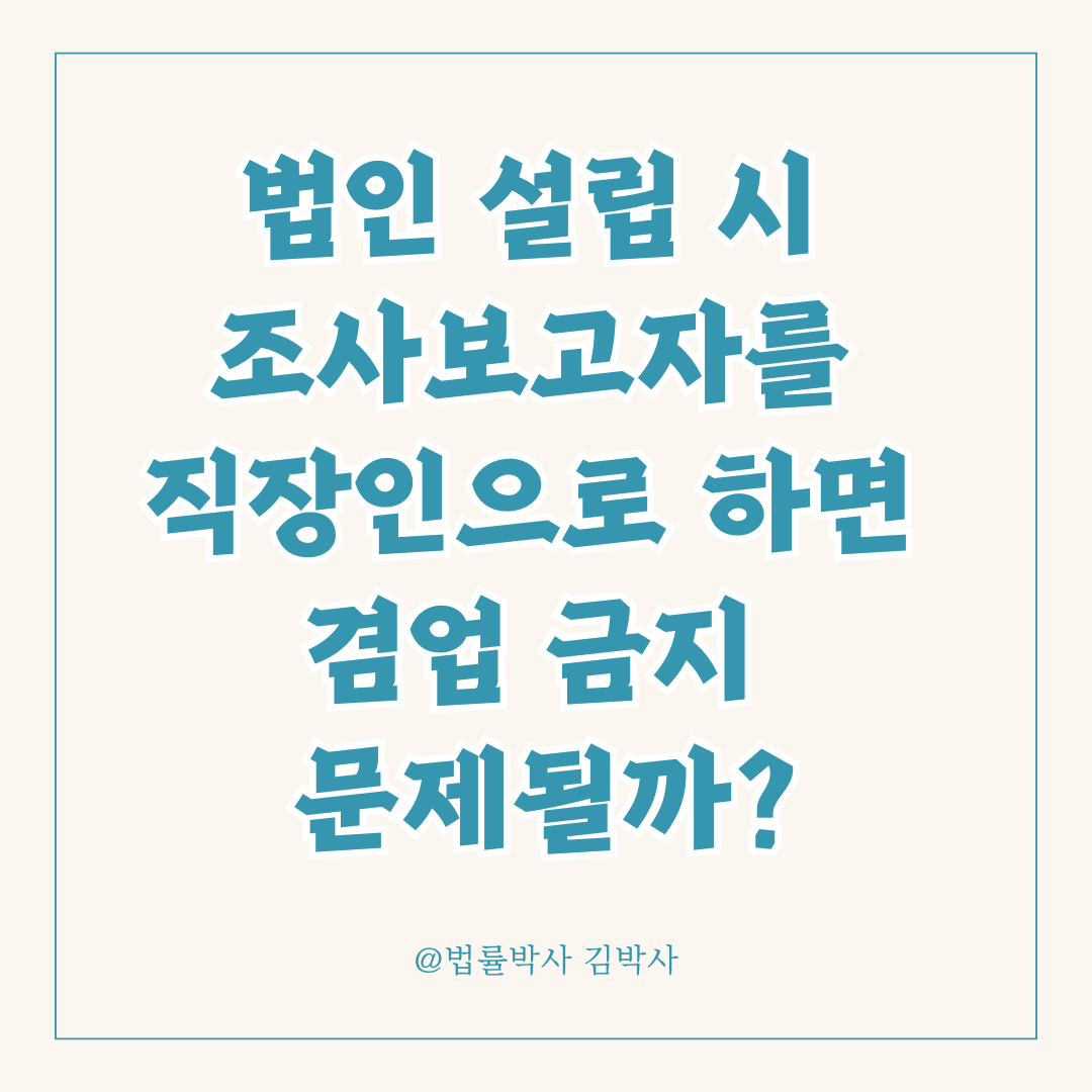 오늘은 법인 설립 시 조사보고자로 직장인을 등록할 경우 발생할 수 있는 문제와 겸업 금지 조항의 위험성에 대해 알아봤어요.