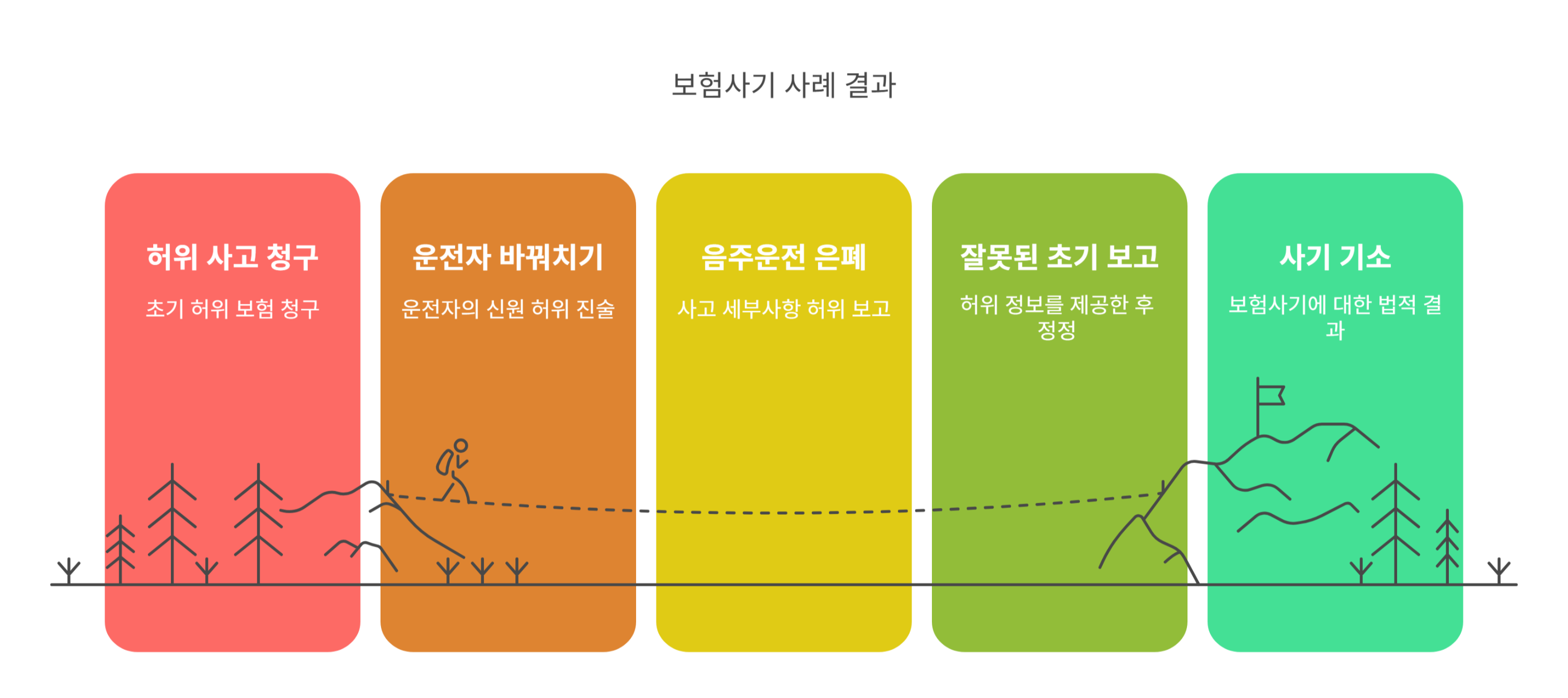 ✅ 보험사기방지법, 형법, 도로교통법 등 다양한 법률이 적용될 수 있으므로 신속하고 정직한 대응이 최선입니다.