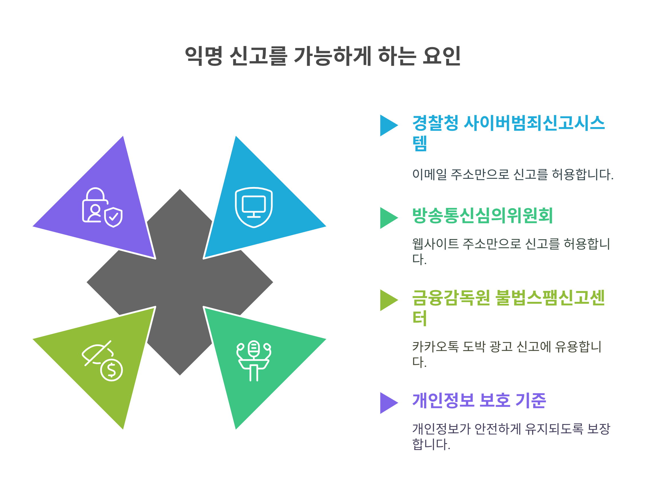 ✅ 신고 기관은 경찰청, 방심위, 금감원 등 다양하며,