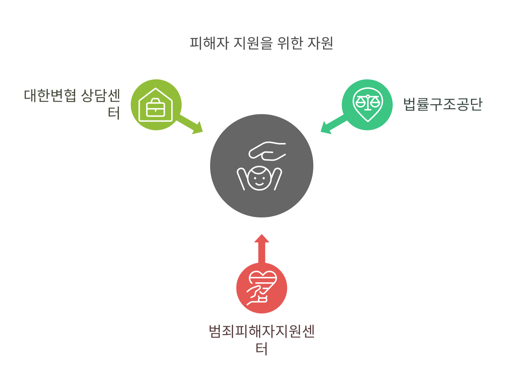 ✅ 법률구조공단, 범죄피해자지원센터 등 공공기관의 도움을 받는 것도 큰 도움이 됩니다.