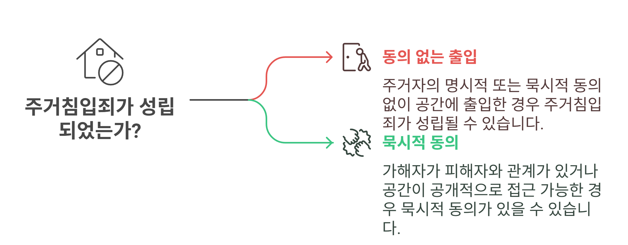 ✅ 특히 동의 여부, 출입 경로, 고의성은 핵심 판단 요소이며,