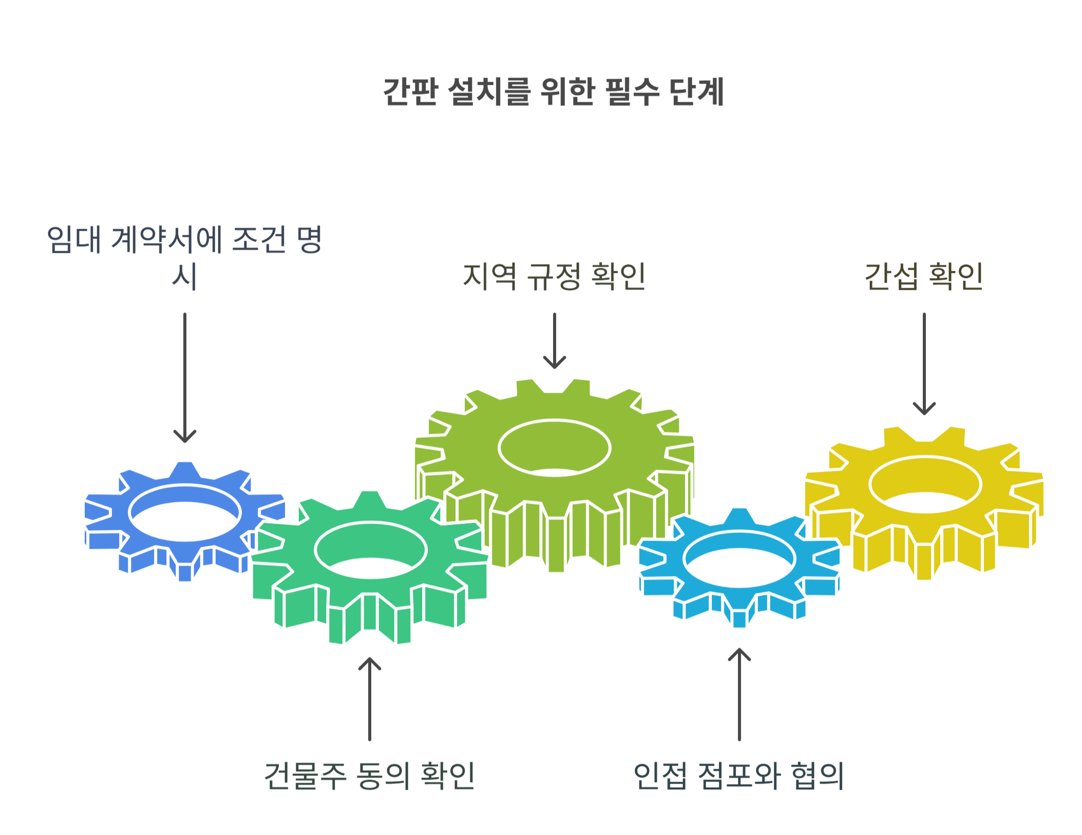 특히 간판을 외벽이나 공유공간에 설치할 경우, 건물주나 다른 임차인의 동의 필요 여부도 체크하세요.