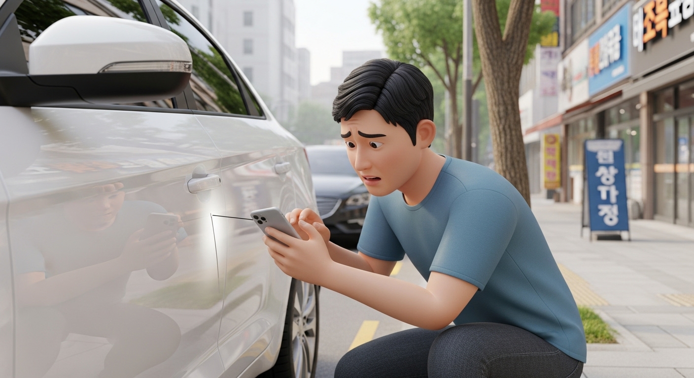 차량을 이동하기 전, 긁힌 부위와 차량 전체 모습, 번호판이 나오게 사진을 찍으세요. 상대방 차가 있다면 그 차의 파손 부위와 연락처도 확보해야 합니다.
