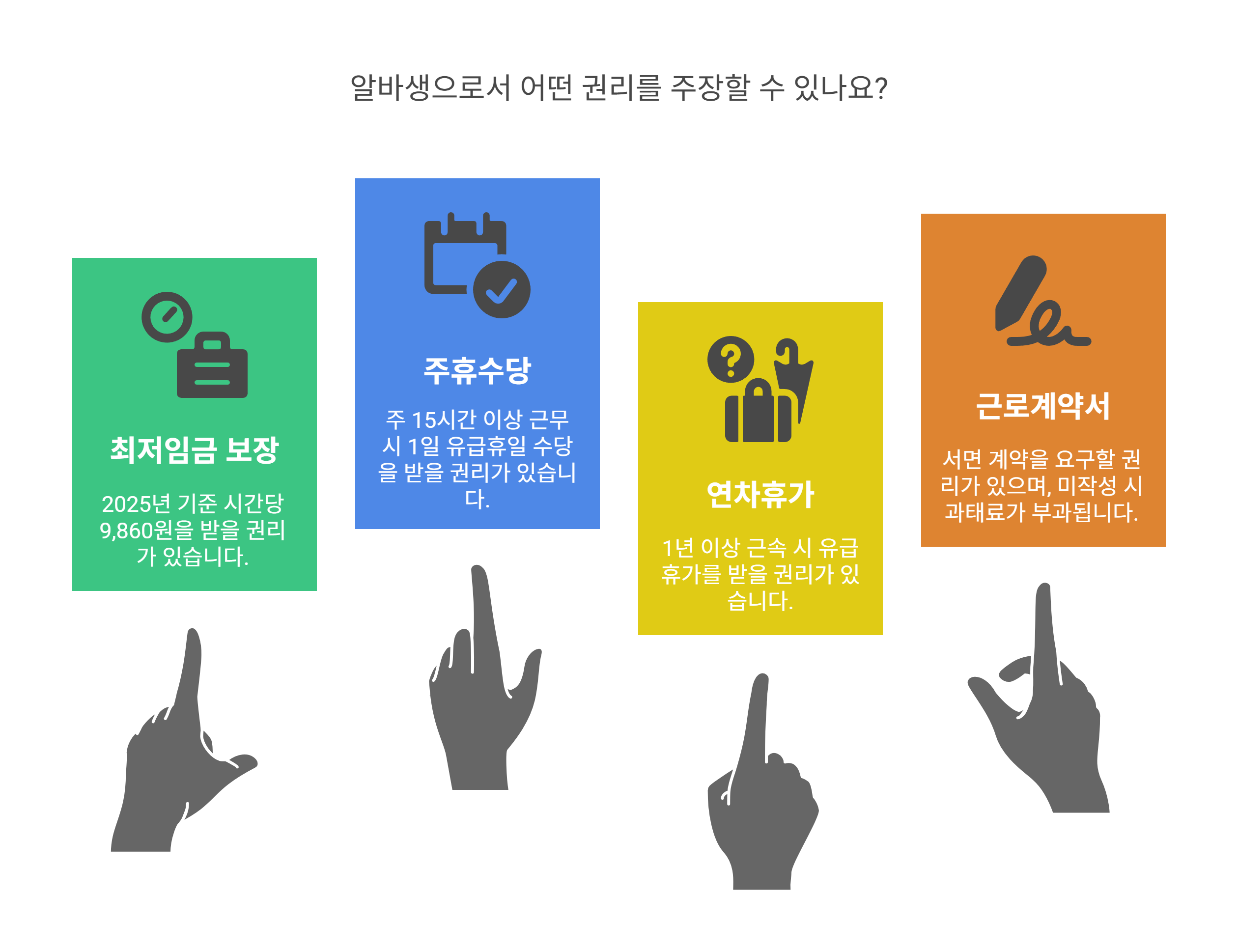 다음은, 알바생이 어떤 권리를 주장할 수 있는지 자세히 알려드릴게요! 📢