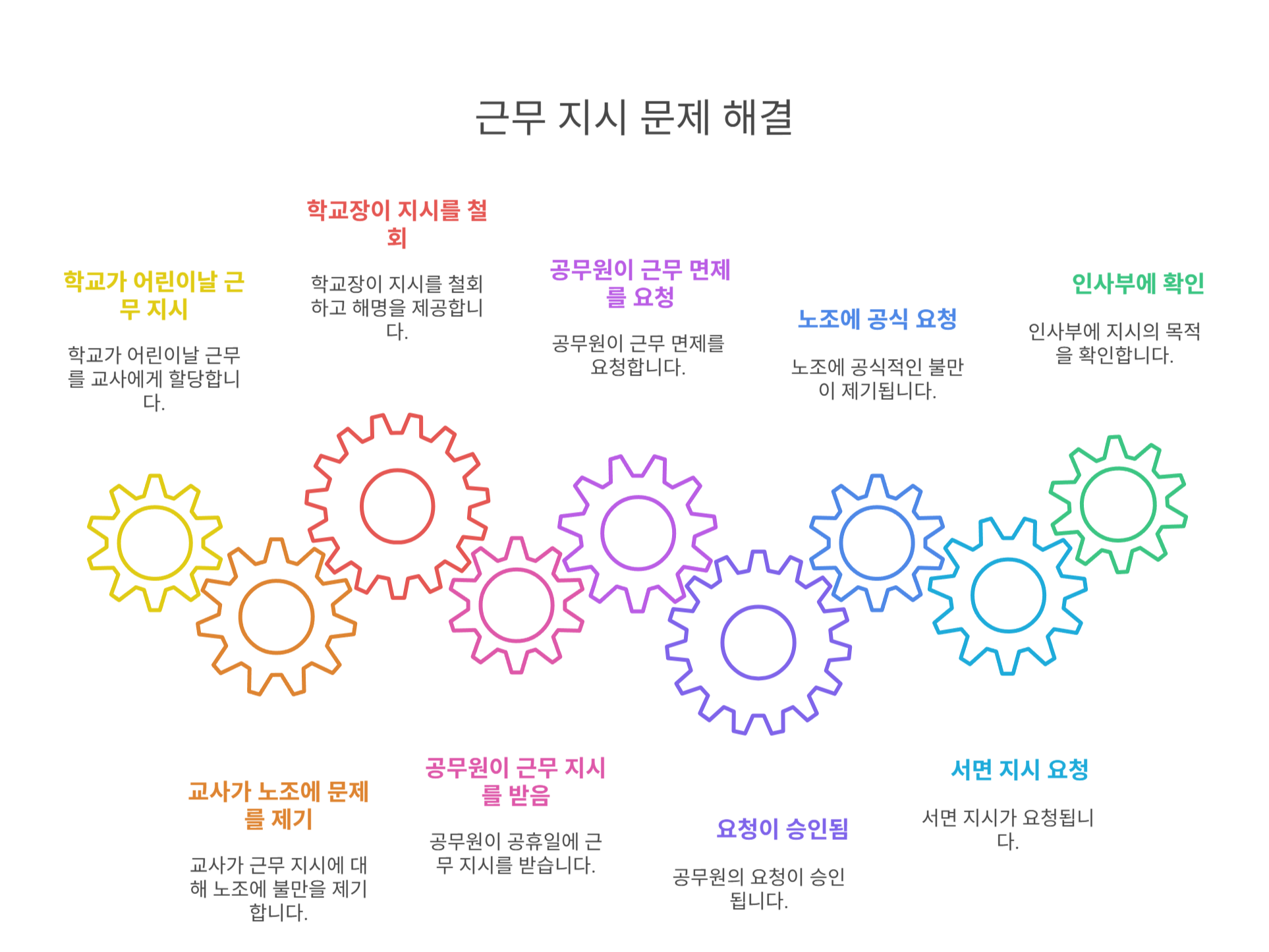 그럼 어린이날 당번근무 지시가 가능한지, 교사 사례부터 알아볼게요! 🏫