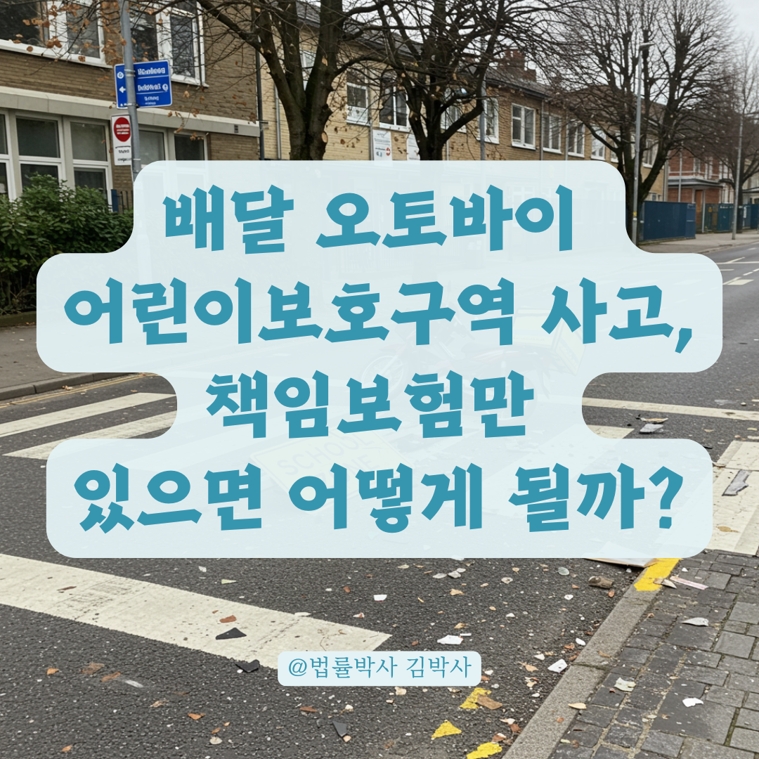 배달 오토바이가 책임보험만 가입한 상태에서 어린이보호구역 사고를 내면, 형사처벌 + 민사책임 모두 무겁게 따릅니다.