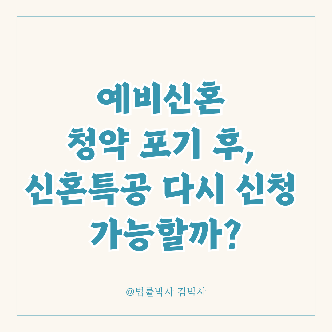 예비신혼 청약 당첨 포기 후, 신혼특공 다시 신청 가능할까?
