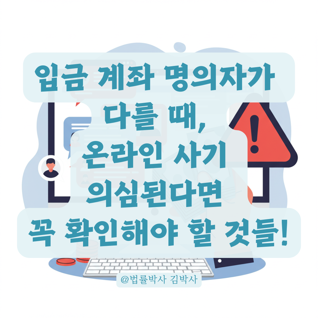 ✅ 특히 계좌 명의자가 다르거나, 판매자가 정체를 밝히지 않는다면 사기를 의심하고 즉시 대응하셔야 합니다.