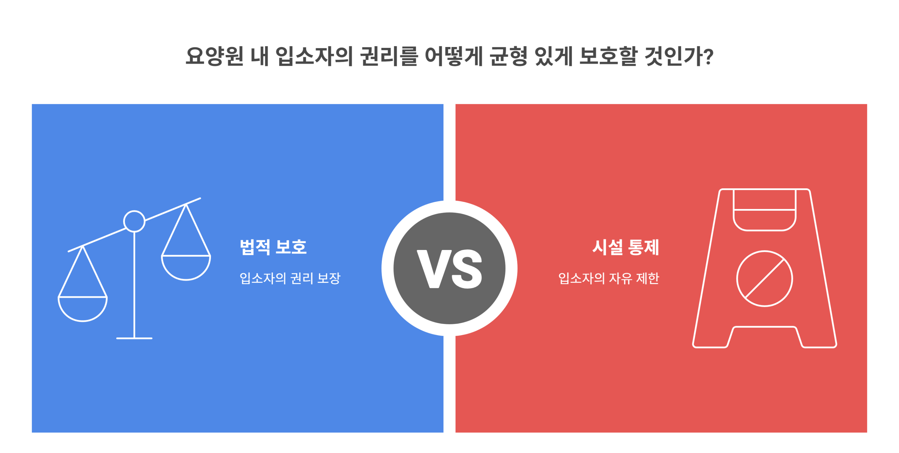 요양원은 환자를 보호·관리하는 역할을 하지만, 입소자의 권리까지 대리하거나 제한할 권한은 없습니다.