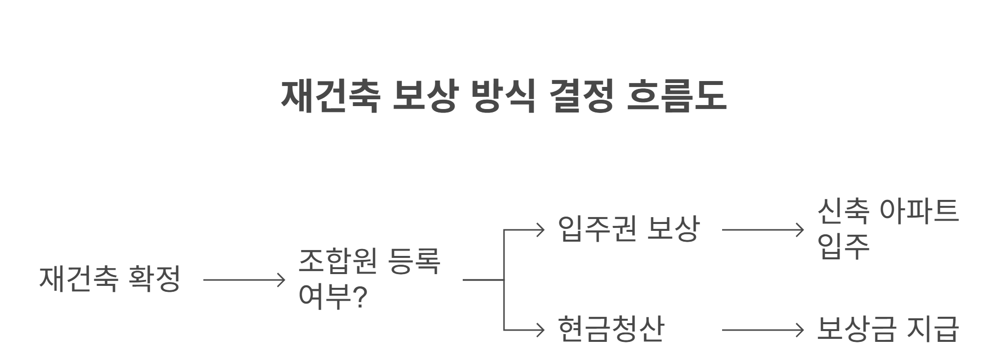 | 입주권 보상 | 신축 아파트에 입주할 권리 부여 | 조합원 (지정된 기준일 이전 매수자) |