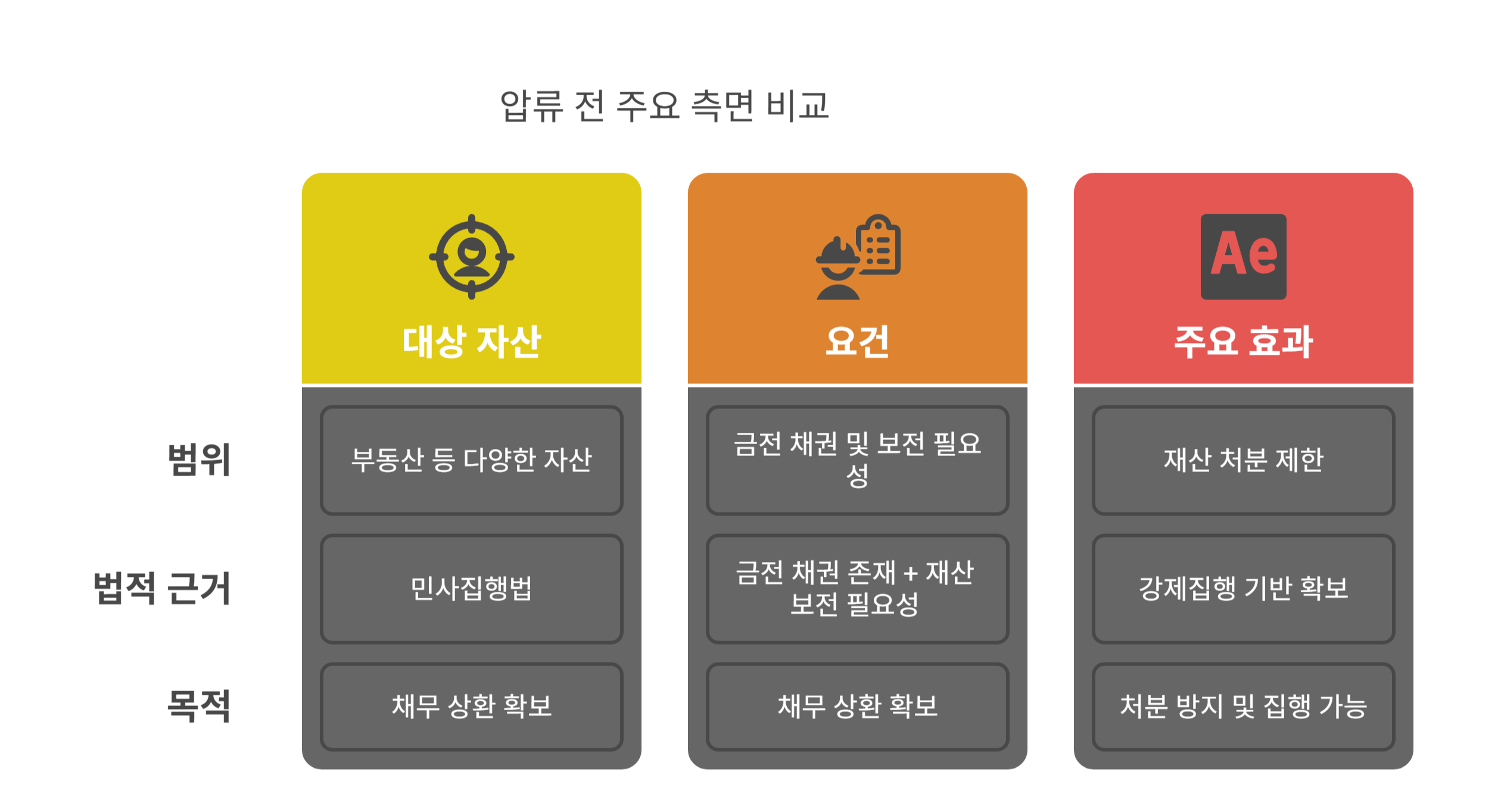 | 주요 효과 | 재산 처분 제한 + 강제집행 기반 확보 |