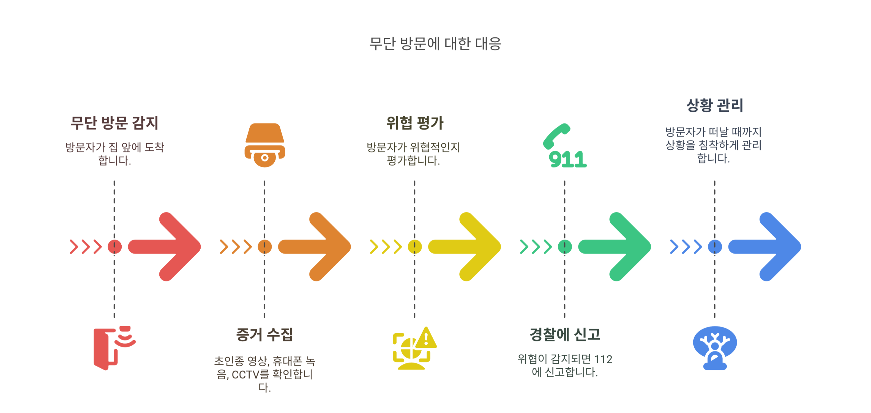 초인종 반복 누름, 문 앞 고성, 무단 진입 시도는 증거를 확보한 뒤, 경찰에 바로 신고하세요.