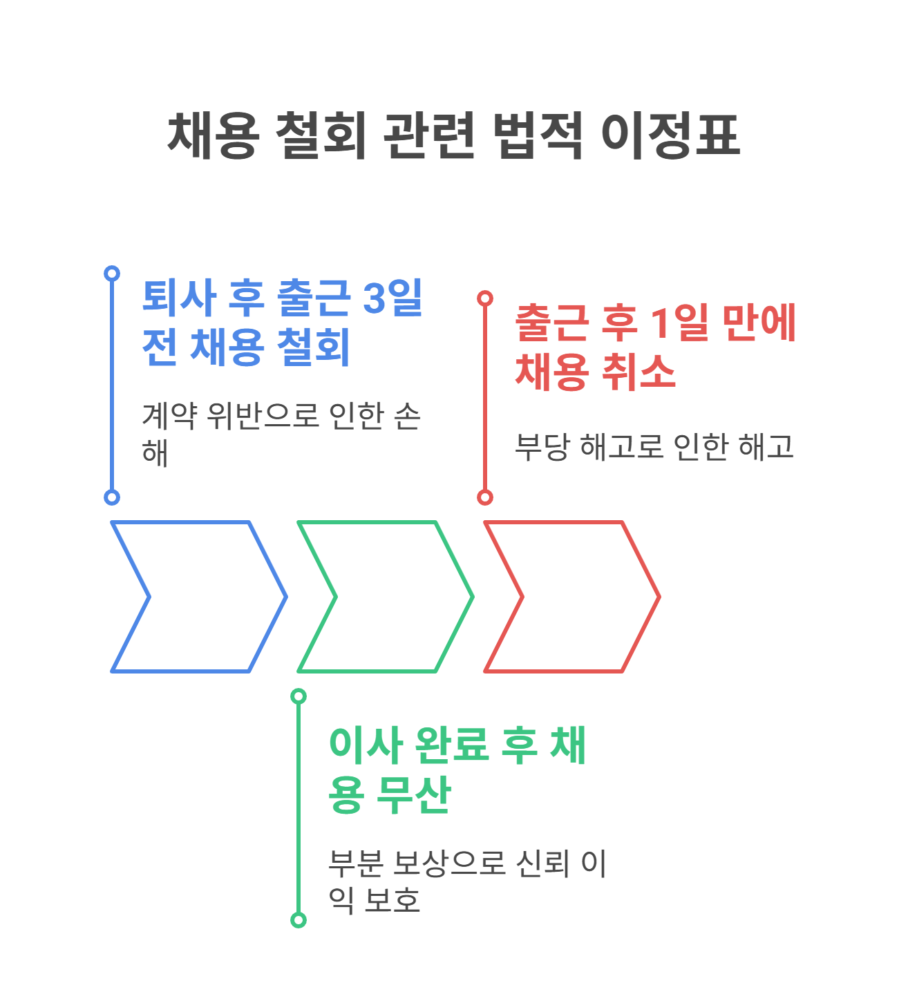 | 채용 확정 후 일방 철회 | 위법 | 부당해고 간주 가능 |