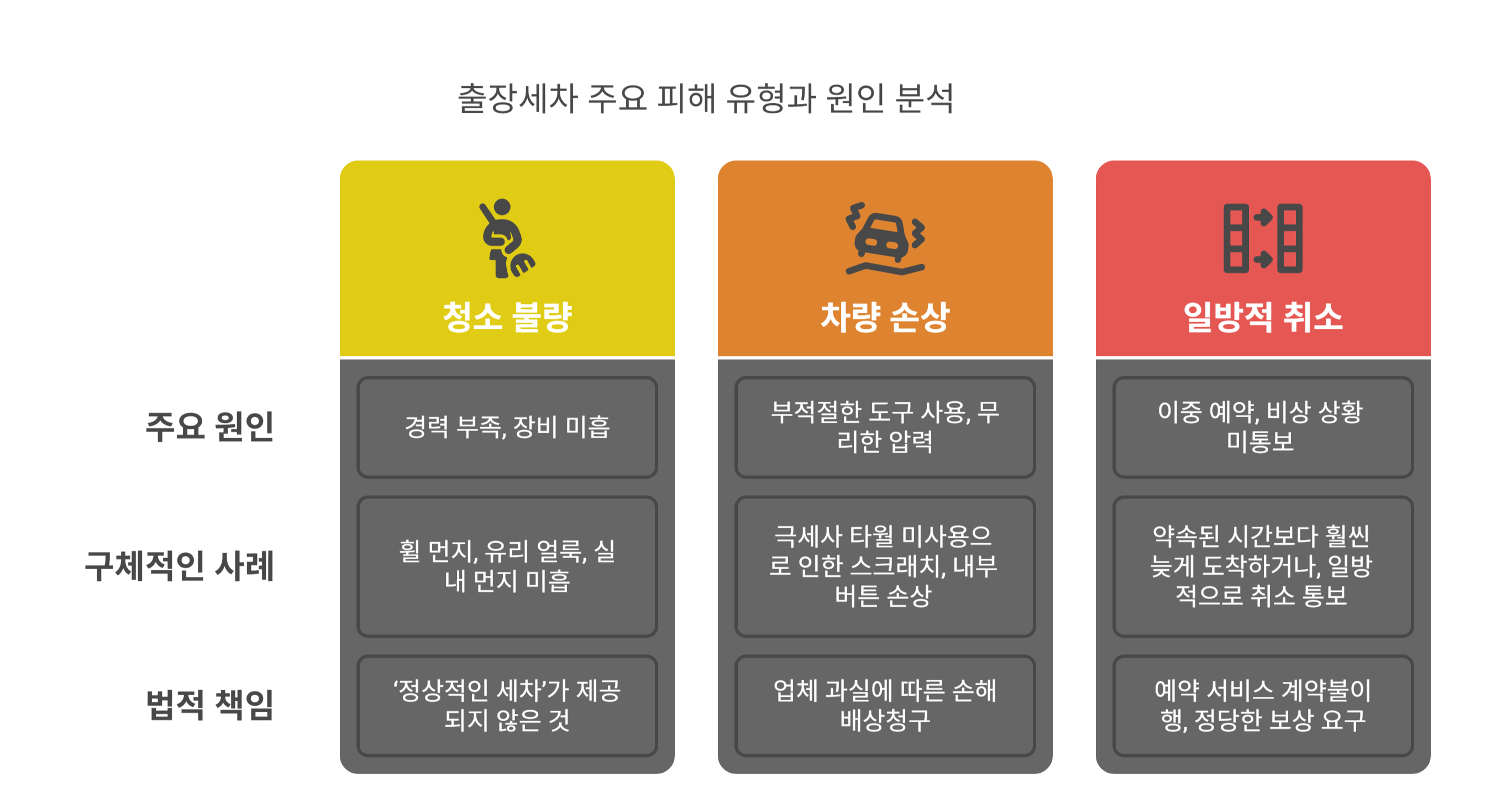 ✅ 출장세차의 대표적인 피해는 청소 불량, 차량 손상, 과도한 요금 청구