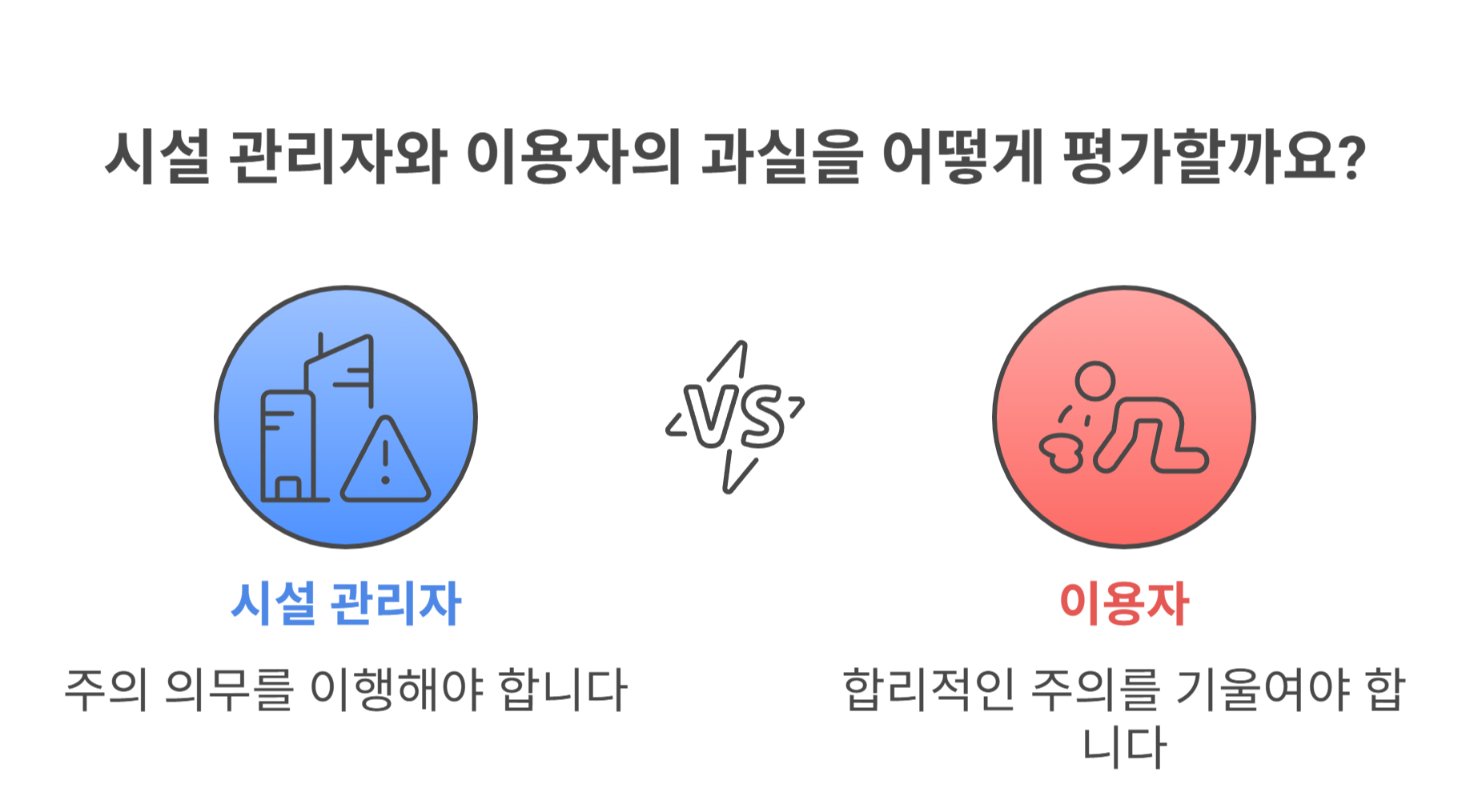 사고 상황이 복잡할수록 법원은 시설 관리자의 주의의무 이행 여부와 이용자의 주의 태도를 함께 고려합니다.
