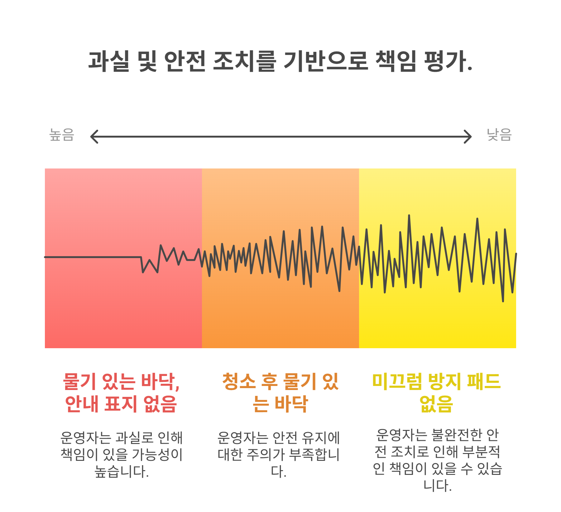 | 물기 있는 바닥에 안내표지 없음 | 높음 (과실 인정 가능) |