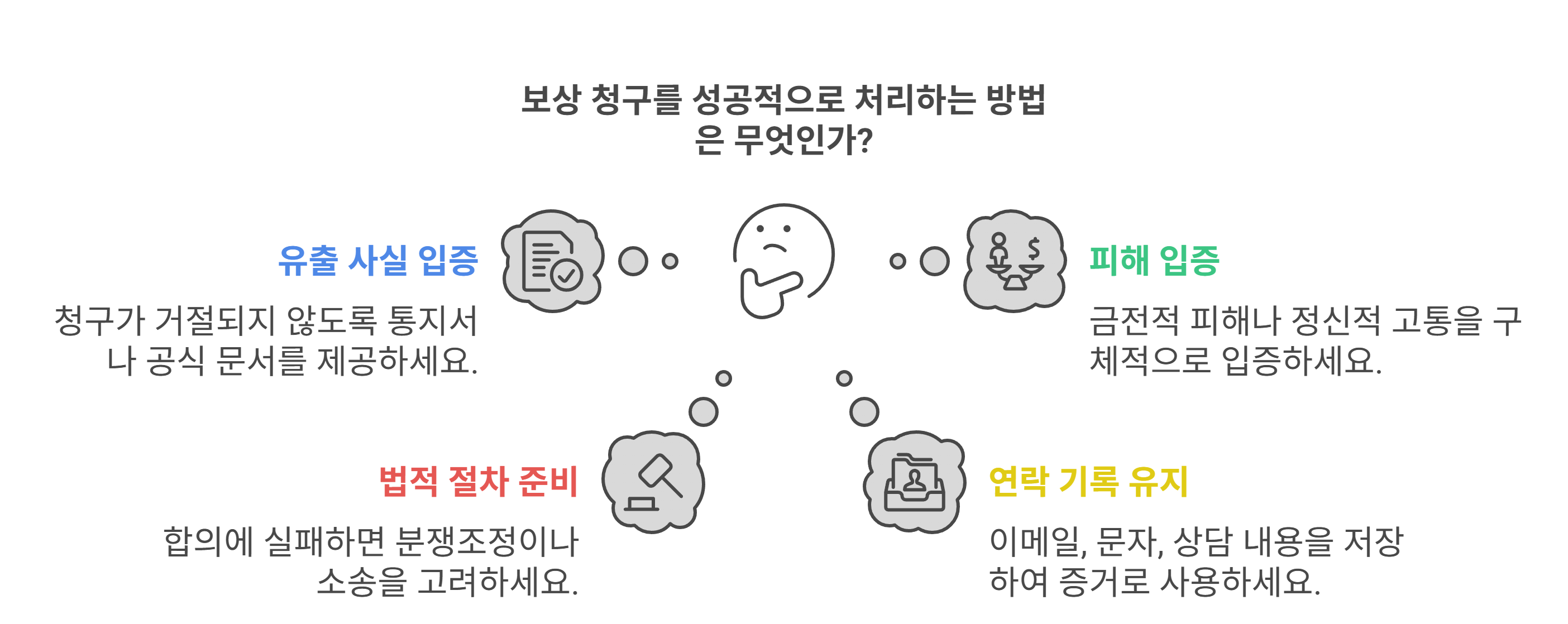 개인정보 유출로 인한 보상 청구를 위해서는 본인 피해 사실을 입증할 수 있는 다양한 자료가 필요합니다.
