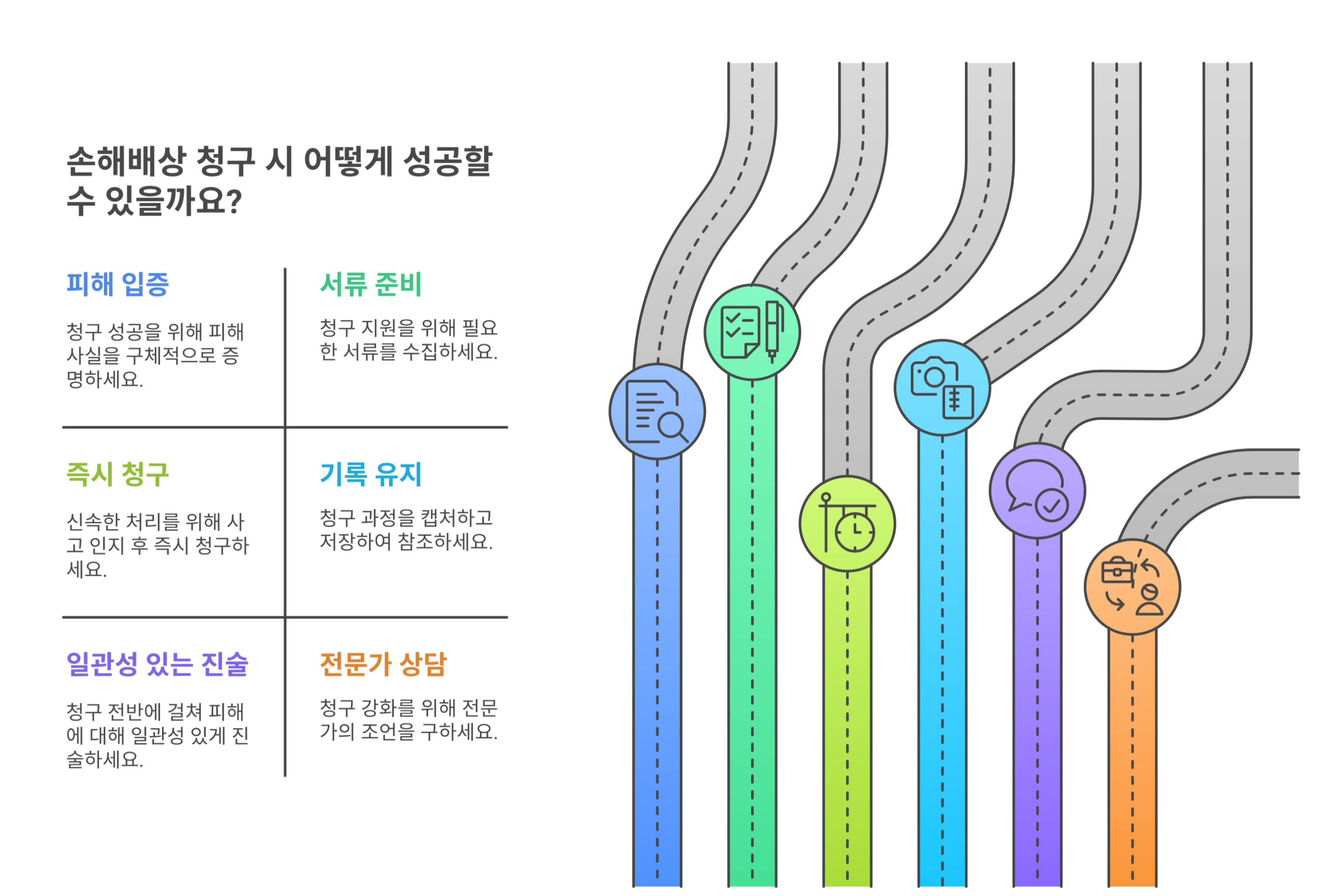 손해배상을 청구할 때는 피해 입증, 절차 준수, 기록 관리가 매우 중요합니다.