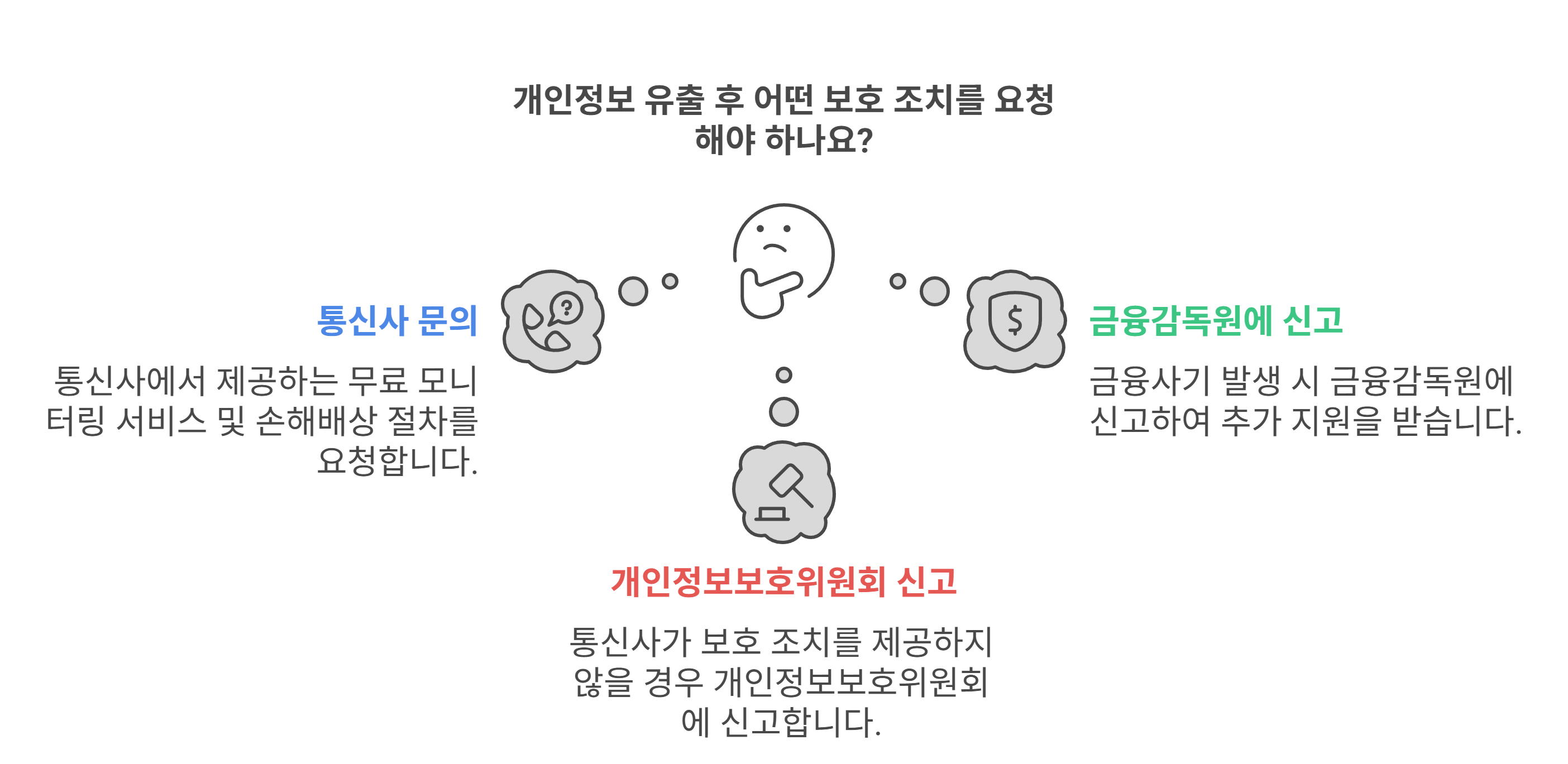 개인정보 유출 사고가 발생하면 통신사는 의무적으로 피해자를 보호하고 피해 최소화 조치를 해야 합니다.